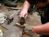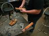 Envoyé en stage de forge par sa compagne, Rémy est vennu plein d'enthousiasme s'essayer au son du marteau et de l'enclume. Au programme, une tres belle lame et un bois superbe !