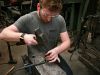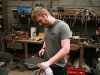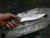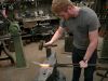 Sa compagne lui a offert un stage de forge à la maison. Magnifique moment tout en frappe et en précision pour ce couteau forgé aux lignes bien agressives !
