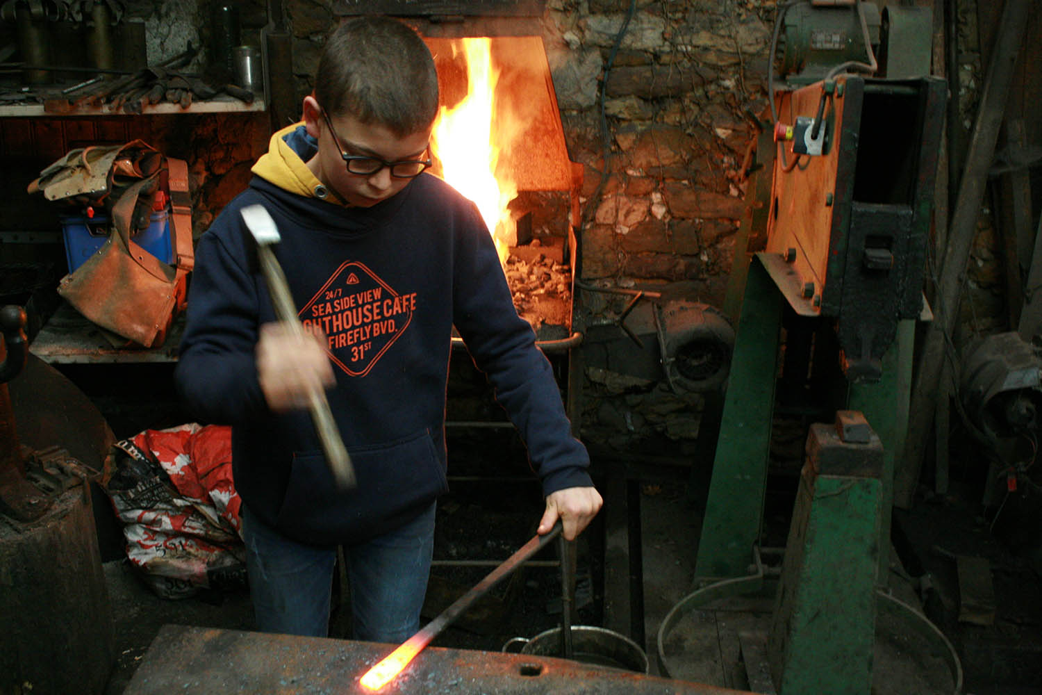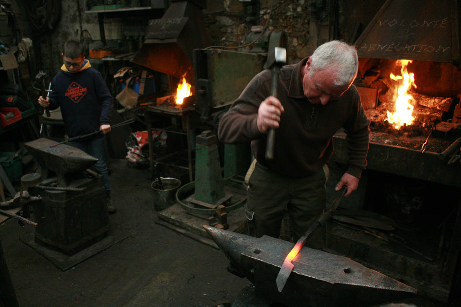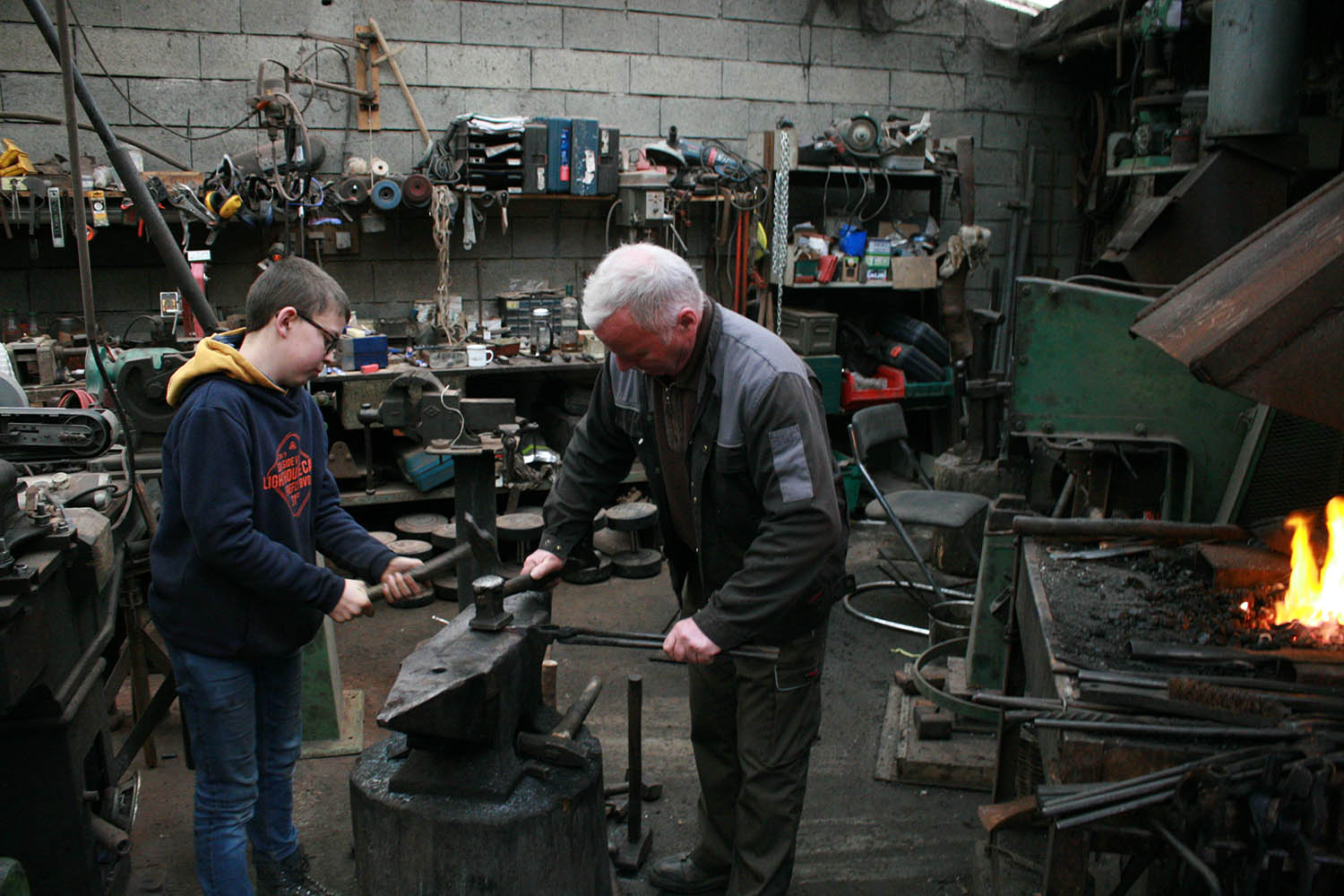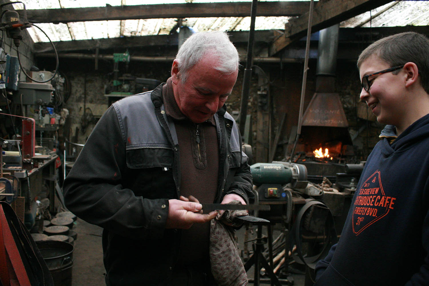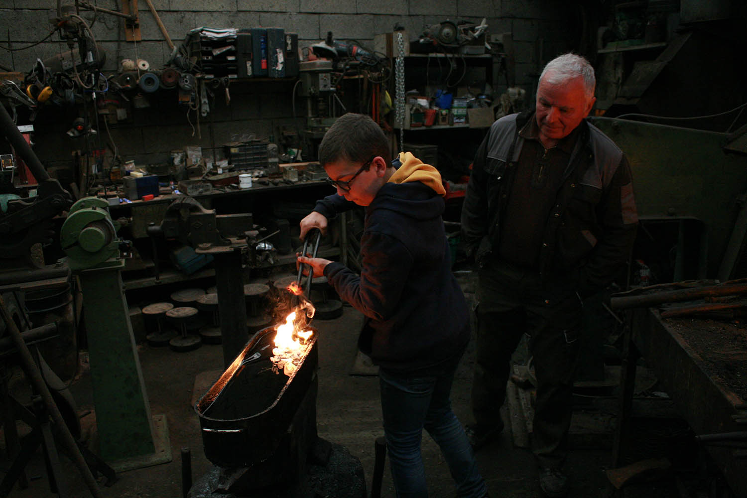 Grand Pére et Petit fils, ça c'est top. Un magnifique moment pour un jeune forgeron desireux de se lancer dans la forge aidé par son grand père.