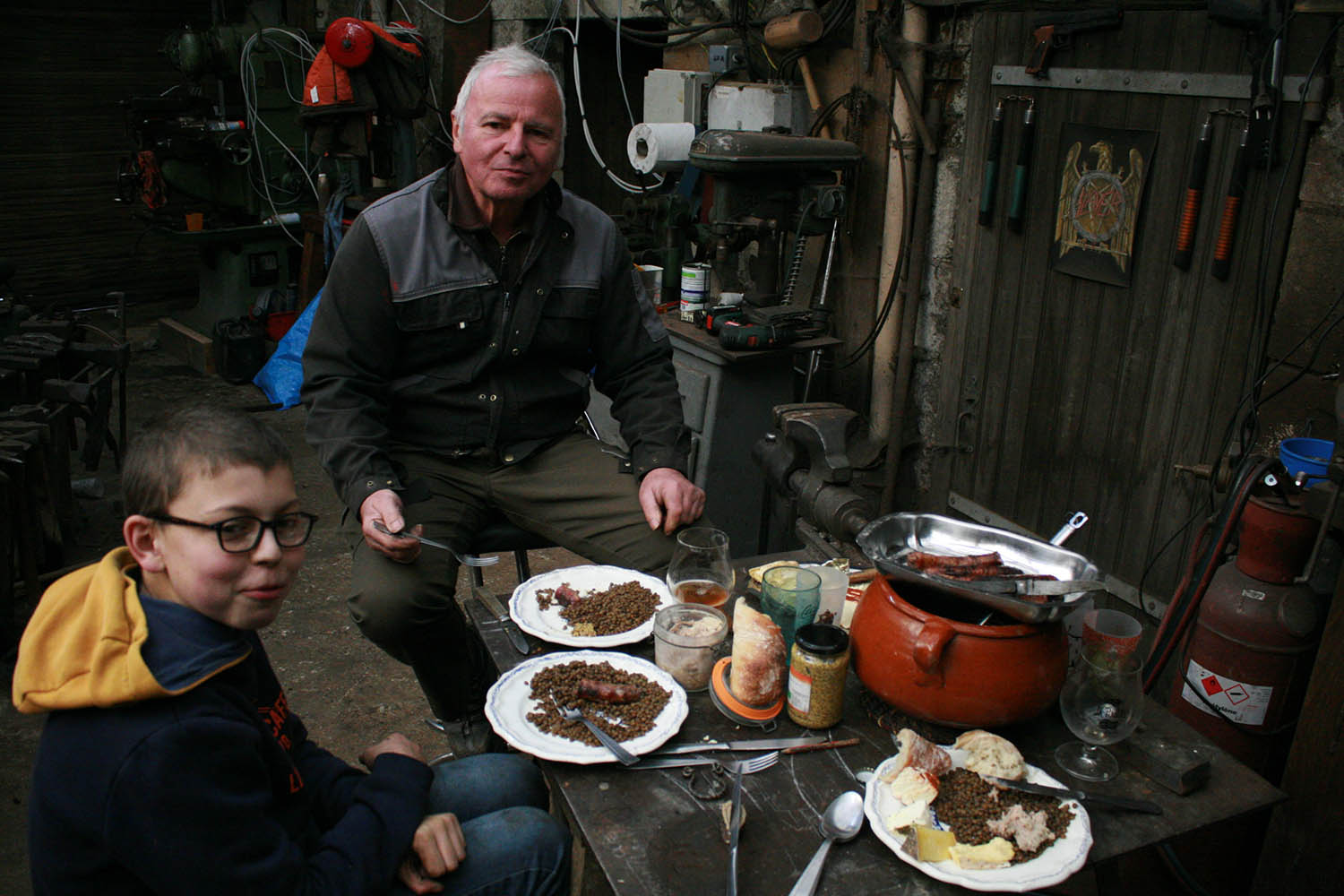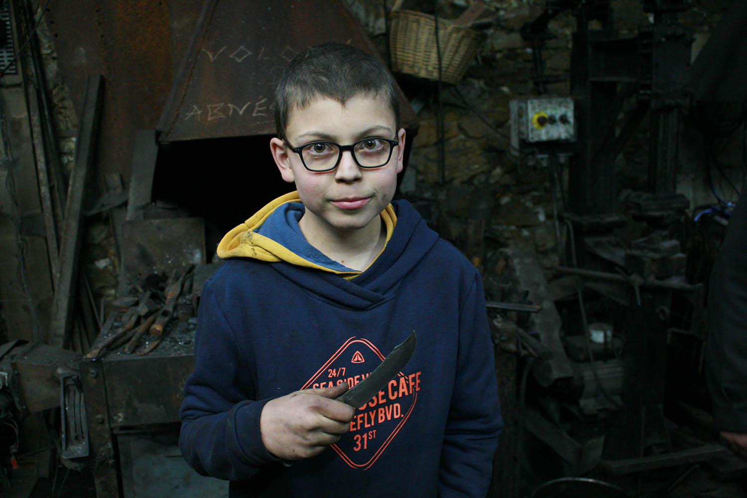 Grand père et petit fils pour un superbe stage de forge. Au programme, 2 couteaux brut de forge pour une belle première experience.
