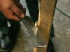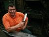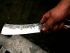 Laurent a décidé se forger une lame tres atypiques. Un stage de forge qui a donne un couteau brut avec l'avant est plus massif que l'arrière. Vous n'imaginez pas l'efficacité du truc !!!
