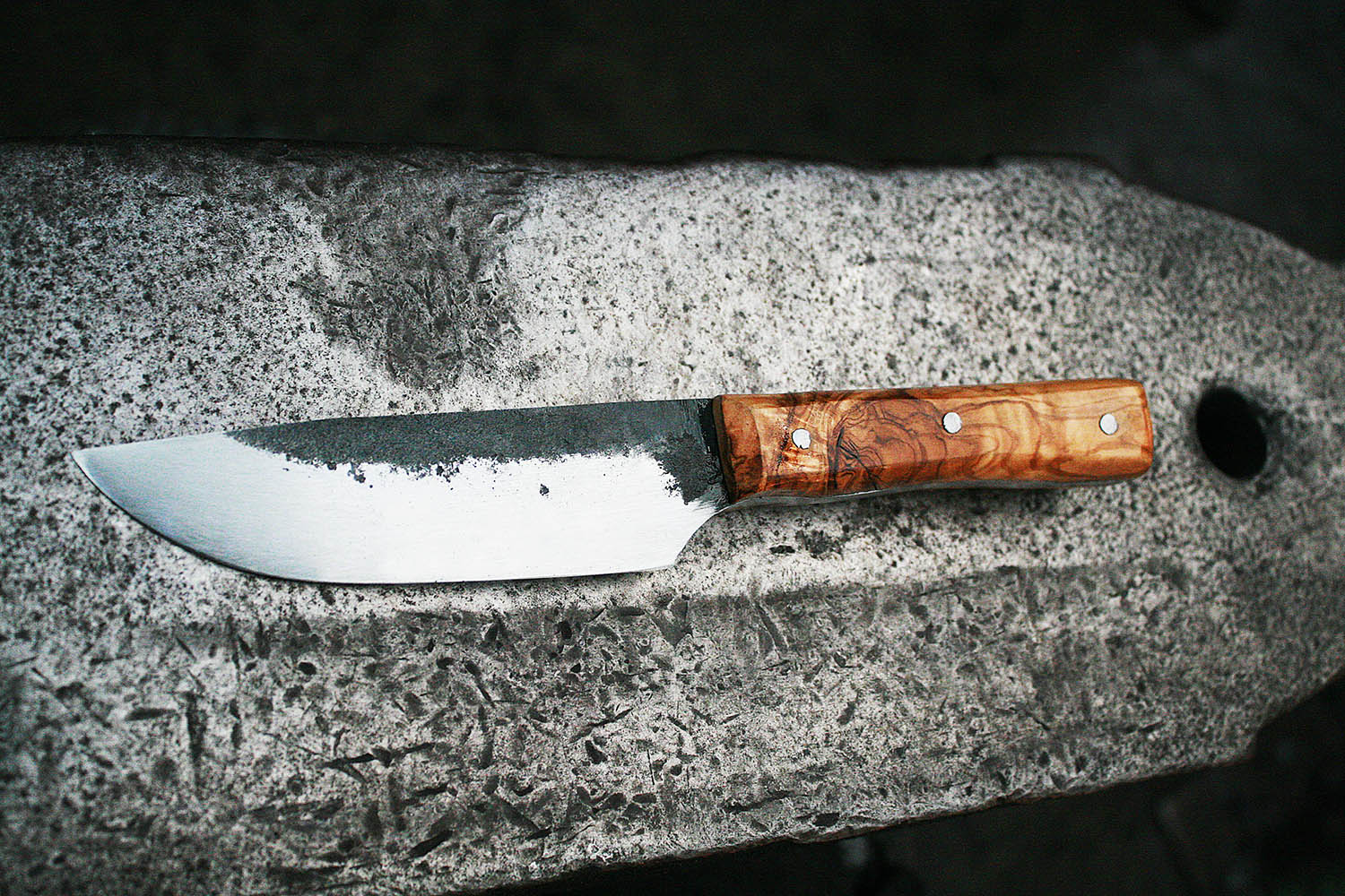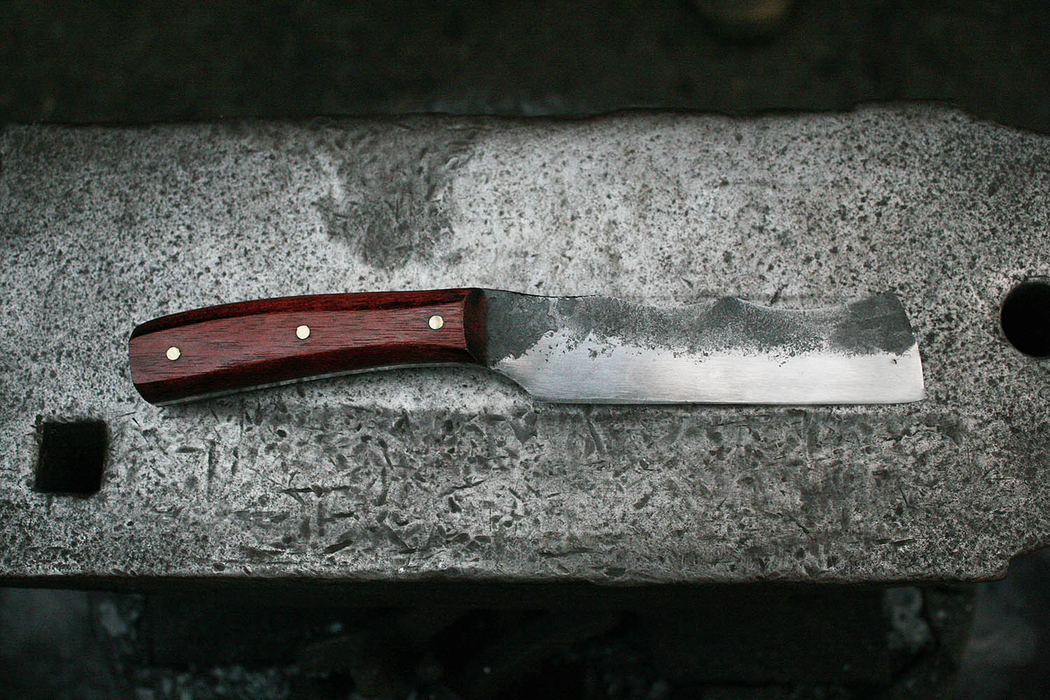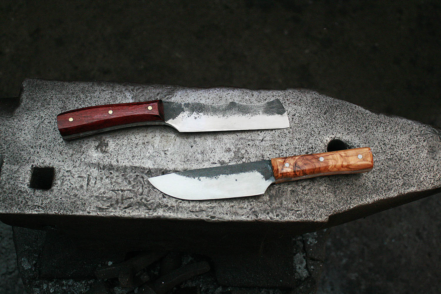Fred etait déjà passé à la forge pour quelques commandes perso. la, il a invité son pote Louis pour un bon stage de forge autour des enclumes. 2 superbes couteau, avec manche en amarante et olivier.
