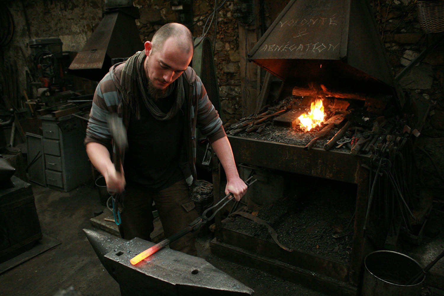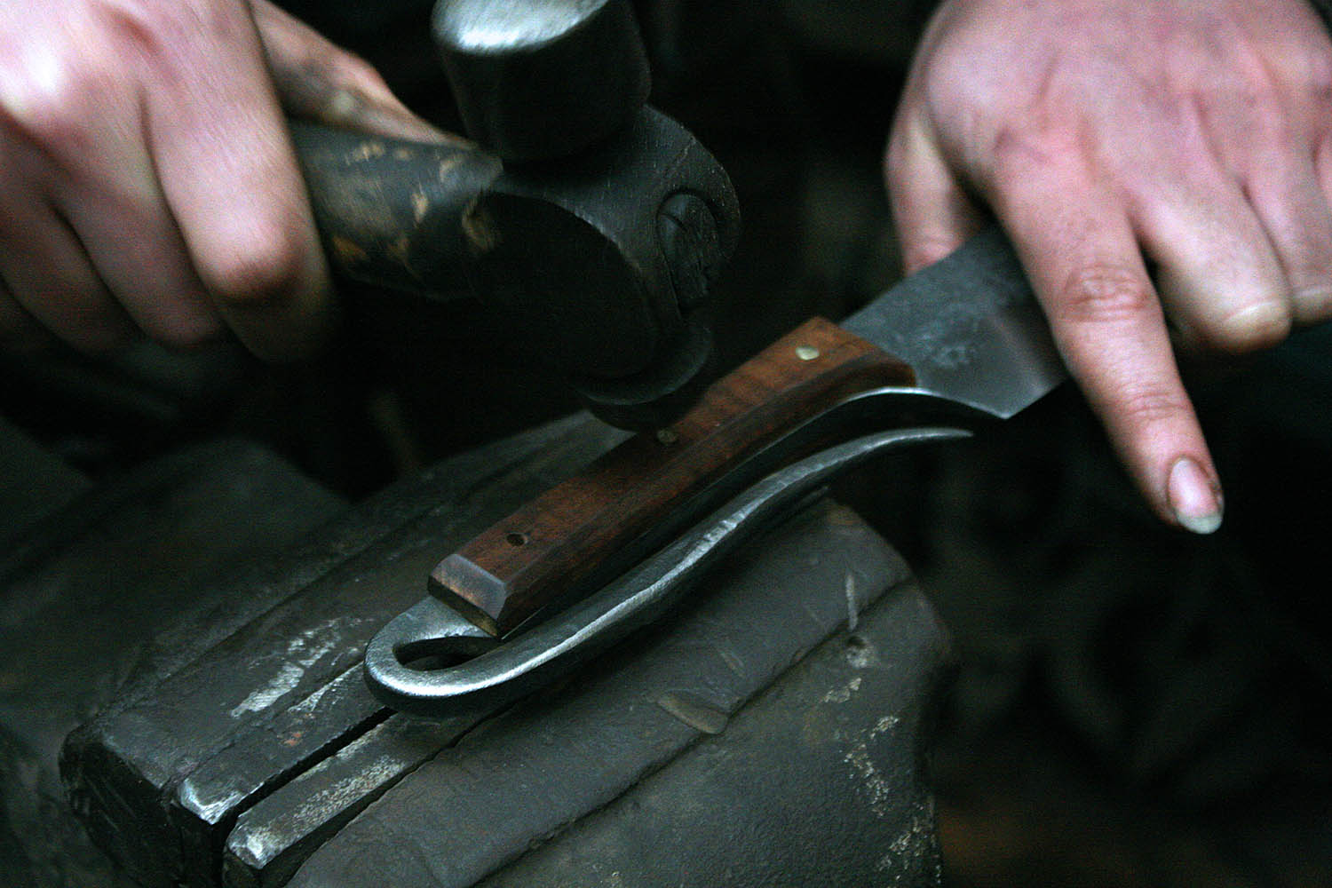 Magnifique et énorme couteau forgé de style bowie. Un tres beau stage pour Simon. Merci pour l'experience !
