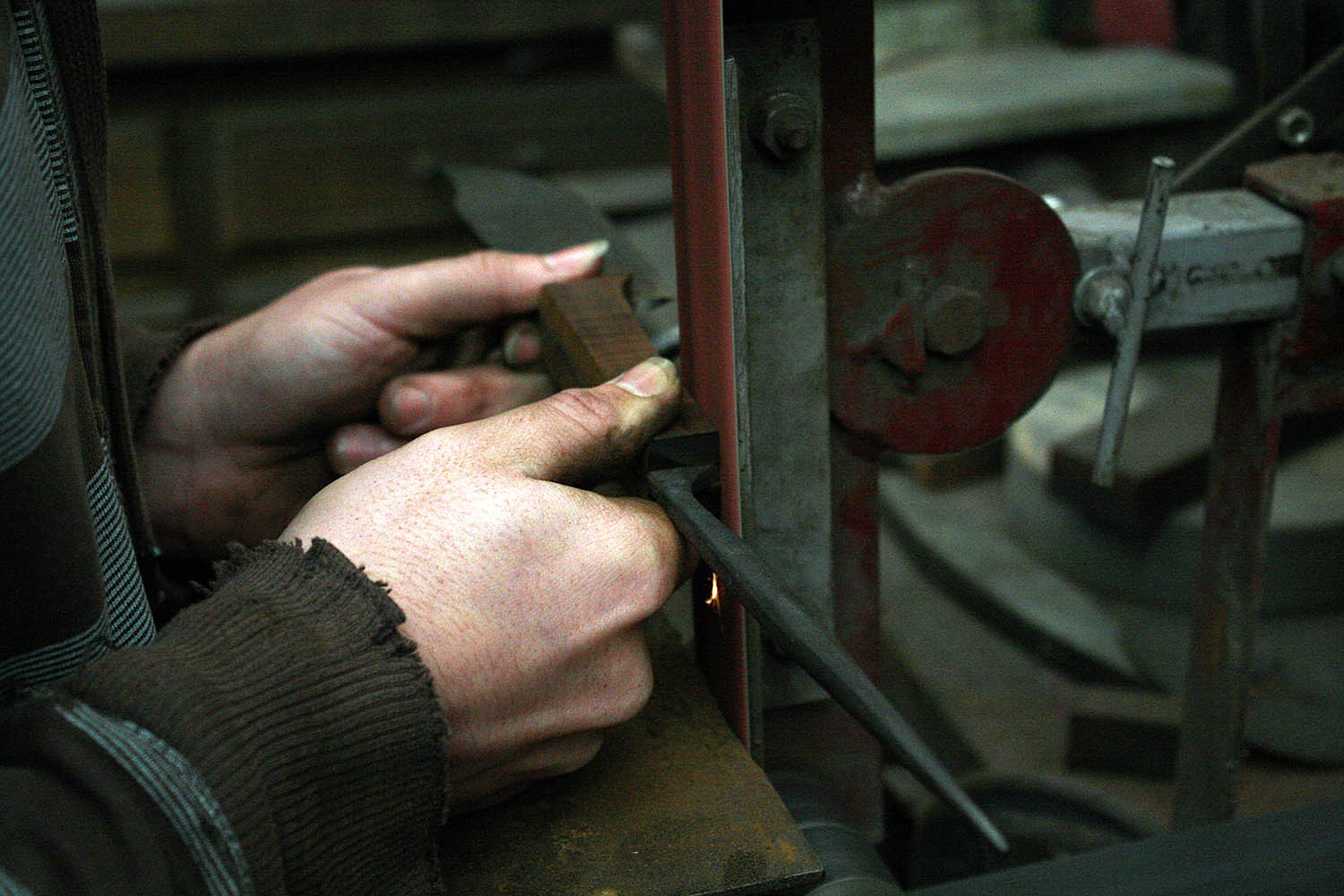 Sympa comme cadeau un stage de forge ! Alors on en a profité pour faire quelque chose d'unique. Un bon gros brut style bowie avec manche en érable ondé. Au top !