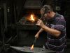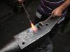 Phillipe a été invité par d'ancien stagiaire pour venir à son tour cogner un peu sur les enclumes. Superbe couteau forgé avec manche en padouk.