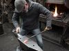 Passionné de reconstitution, de spectacle et d'équitation, ce jeune forgeron est venu faire son premier stage de forge pour réaliser ce gros couteau brut de forge.