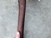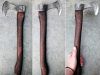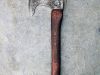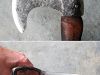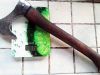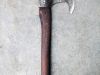 Hache de lancer en 54SiCr6 (acier à ressort) - 11cm de long - 7.5cm de tranchant - manche en fêne de 35cm. Poids : 875g