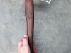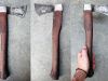 Hache de lancer en 54SiCr6 (acier à ressort) - 11cm de long - 5.5cm de tranchant - manche en fêne de 30cm. Poids : 389g