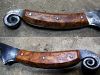 Longueur totale environ 35cm - Acier XC90 - manche en loupe d'orme - rivets acier Epaisseur env 4mm au dos.