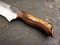 Réalisé pour la chaine de cuisine CHEFCLUB, ce couteau de 5cm de haut en acier XC100 est redoutable. Manche en châtaigner, rivet inox. Design souhaité par le client. Visible en action ici : https://it.pinterest.com/pin/762937993139652501/