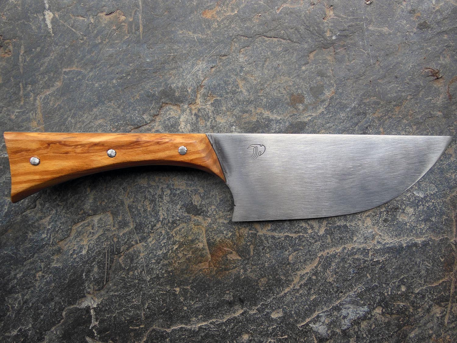 Manche en Olivier de 10.5cm - Lame de 12cm forgée en acier XC80 - Epaisseur env 2.5mm - Rivets aciers.