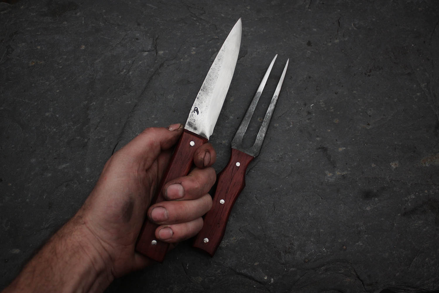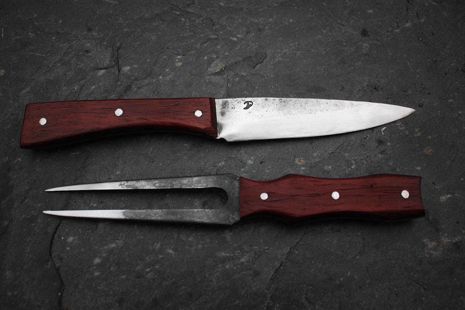Ensemble de cuisine pour les passionnés de rustique; Lame de 13cm en XC130, manche en padouk imputrescible.