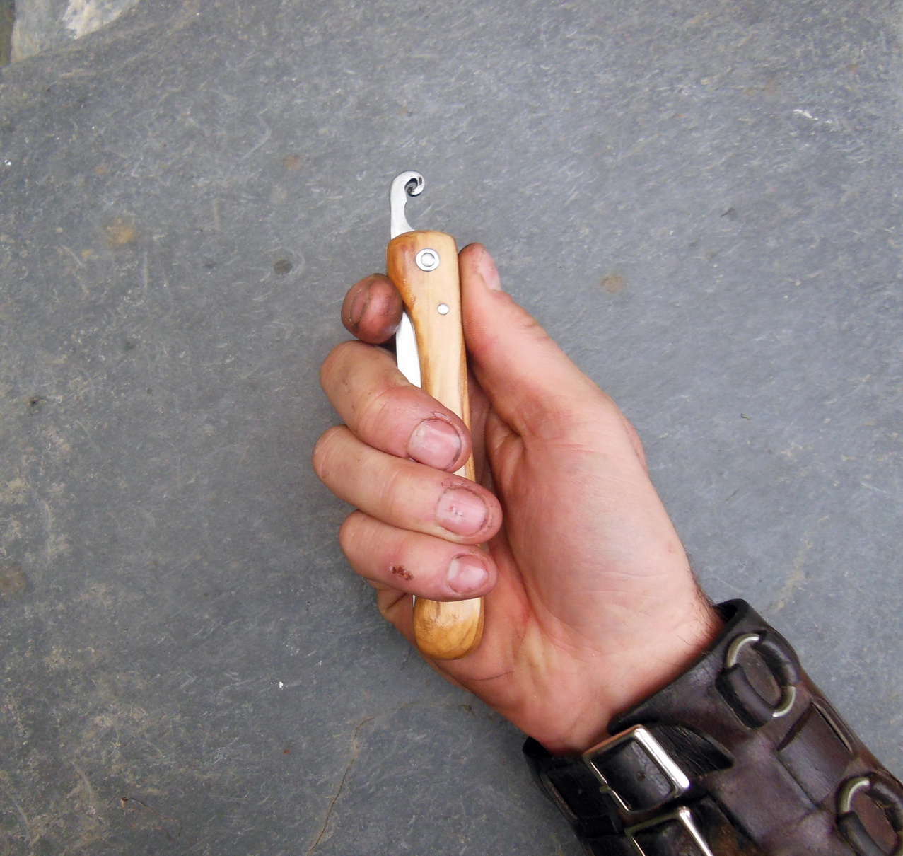 Manche en Olivier de 12cm - Lame de 10.5cm forgée en acier XC80 - Epaisseur env 2.5mm - Axe en Inox.