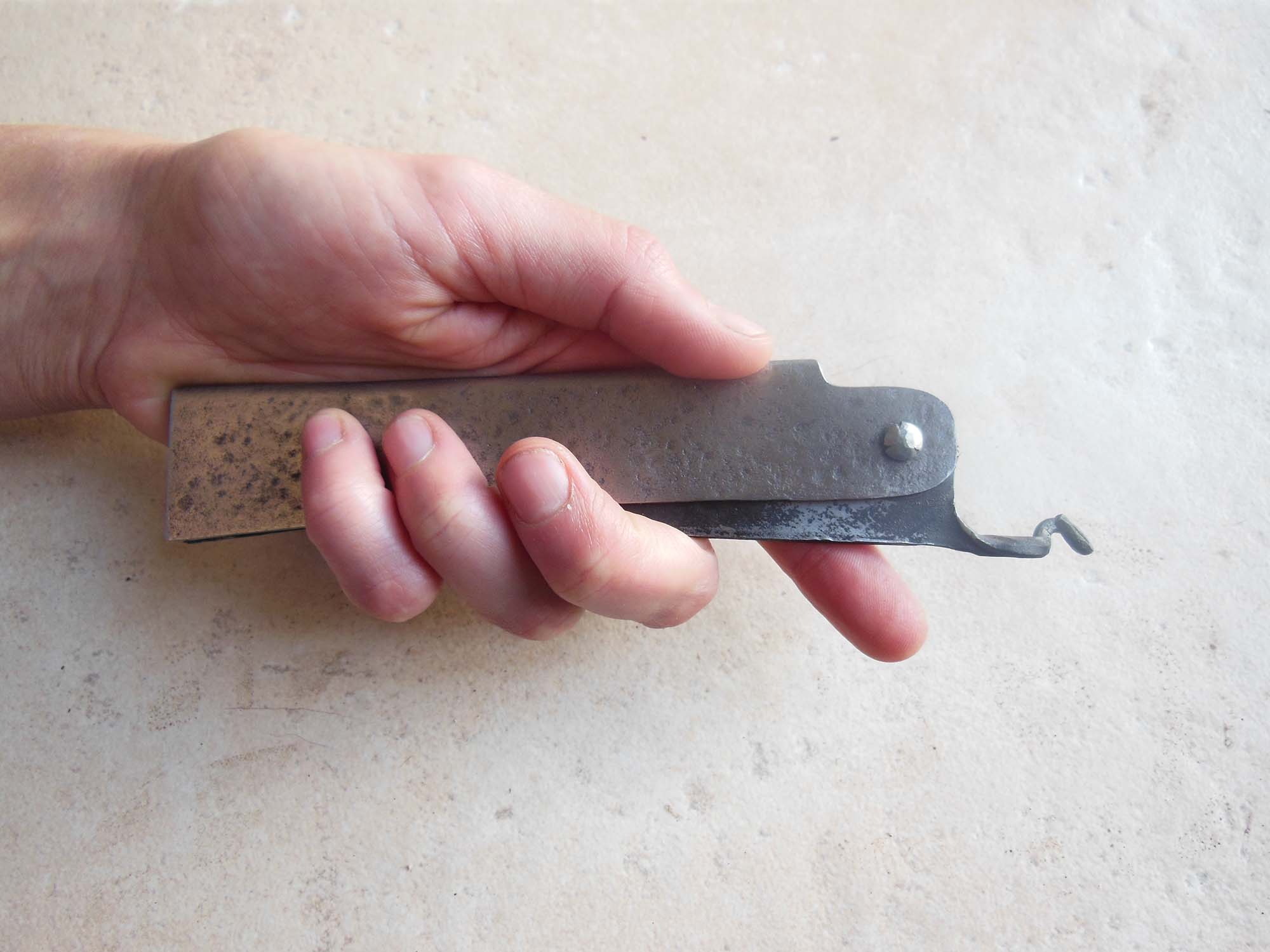 Manche en acier brut de 13cm - Lame de 12cm forgée en acier XC80 - Epaisseur env 3mm - Axe en Stub.
