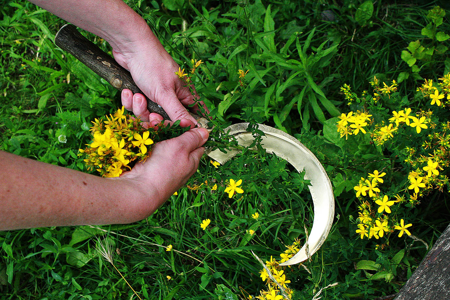 Très belle faucille pour la tout aussi belle Charlotte Granet de (link: https://charlotte-granet.com/ text: Wild And Free Academy). Une trés intense collaboration pour une faucille Nature et Brut.