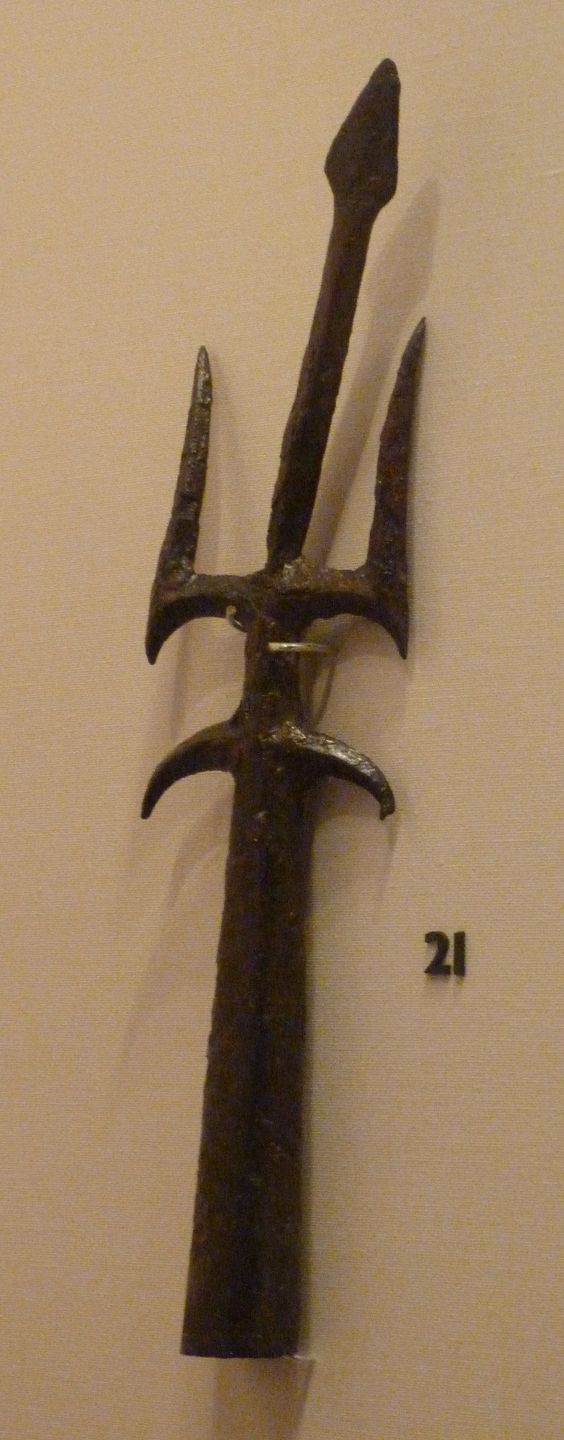 Longueur : 45cm - Largeur max : 15cm - Diam de la douille : 25mm réplique d'un trident trouvé lorsde fouille archéologique au centre de Londre.