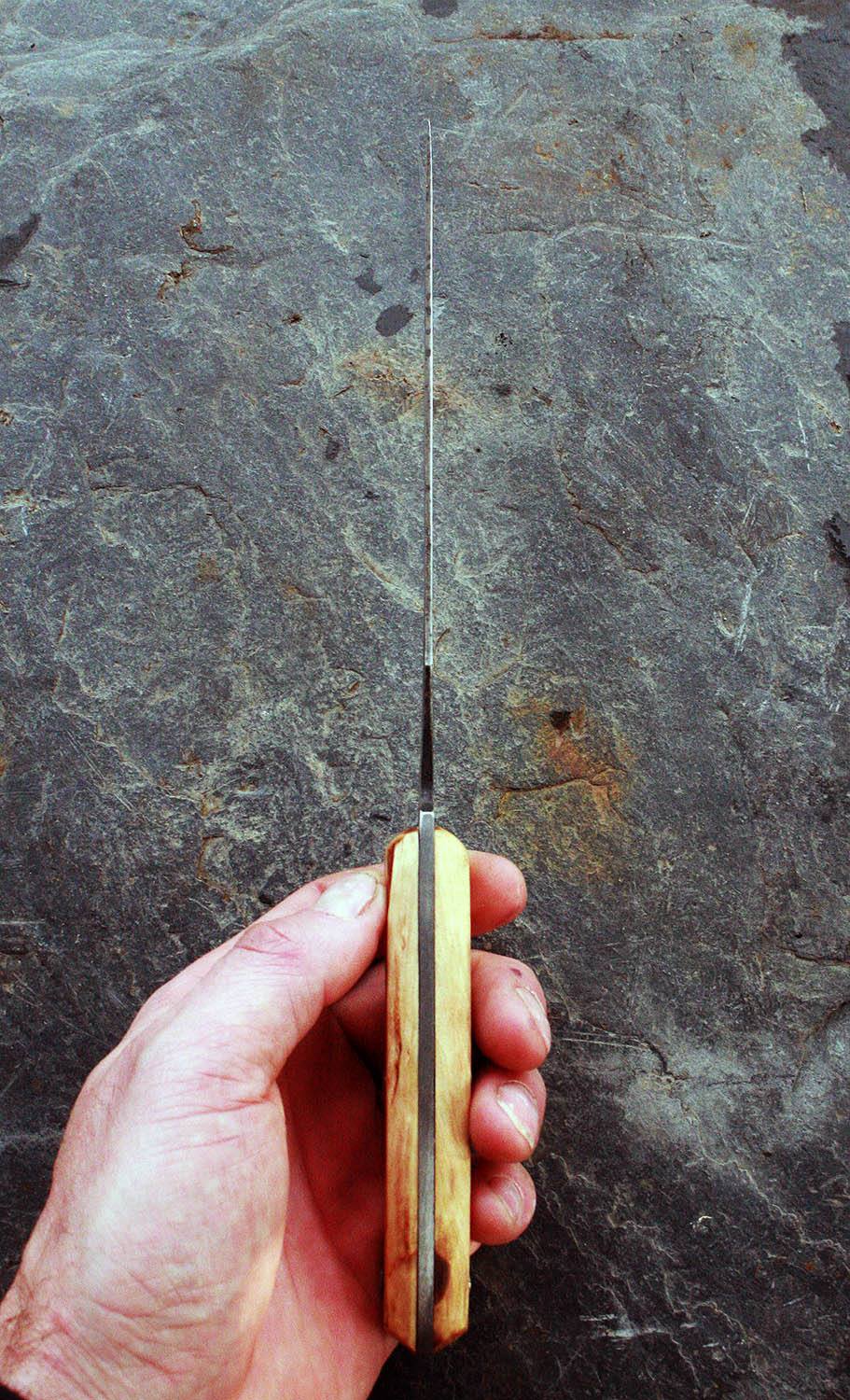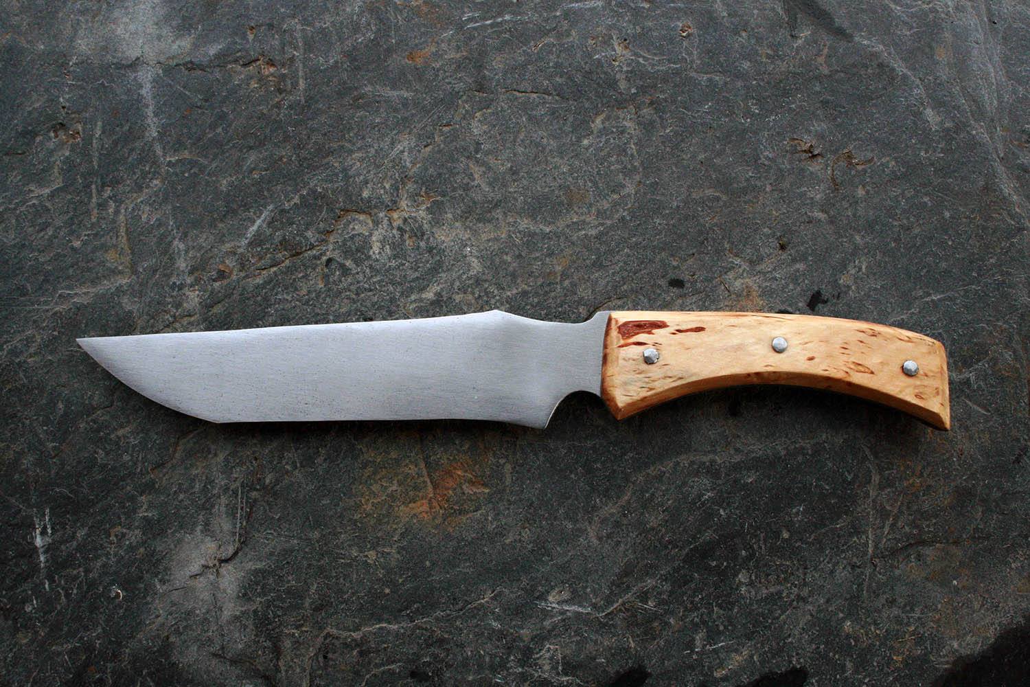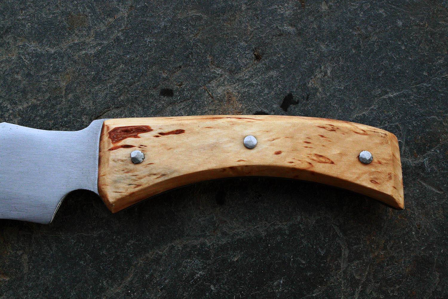 Manche de 13cm en bouleau - lame de 15 en xc80 - épaisseur de 1.5mm au milieu de la lame !!! - rivet acier