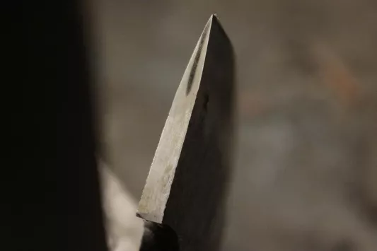 Cette étape à une portée symbolique car elle permet à la hache de devenir un vrai outils mais aussi au forgeron de voir si son travail s'est bien déroulé, si la soudure a bien été faite et si le centrage de l'acier dur est correcte.