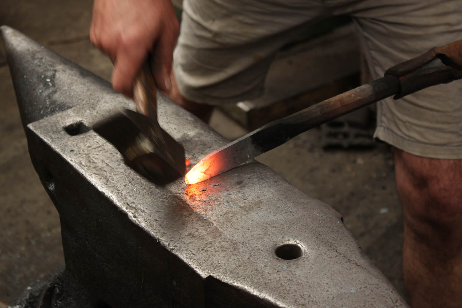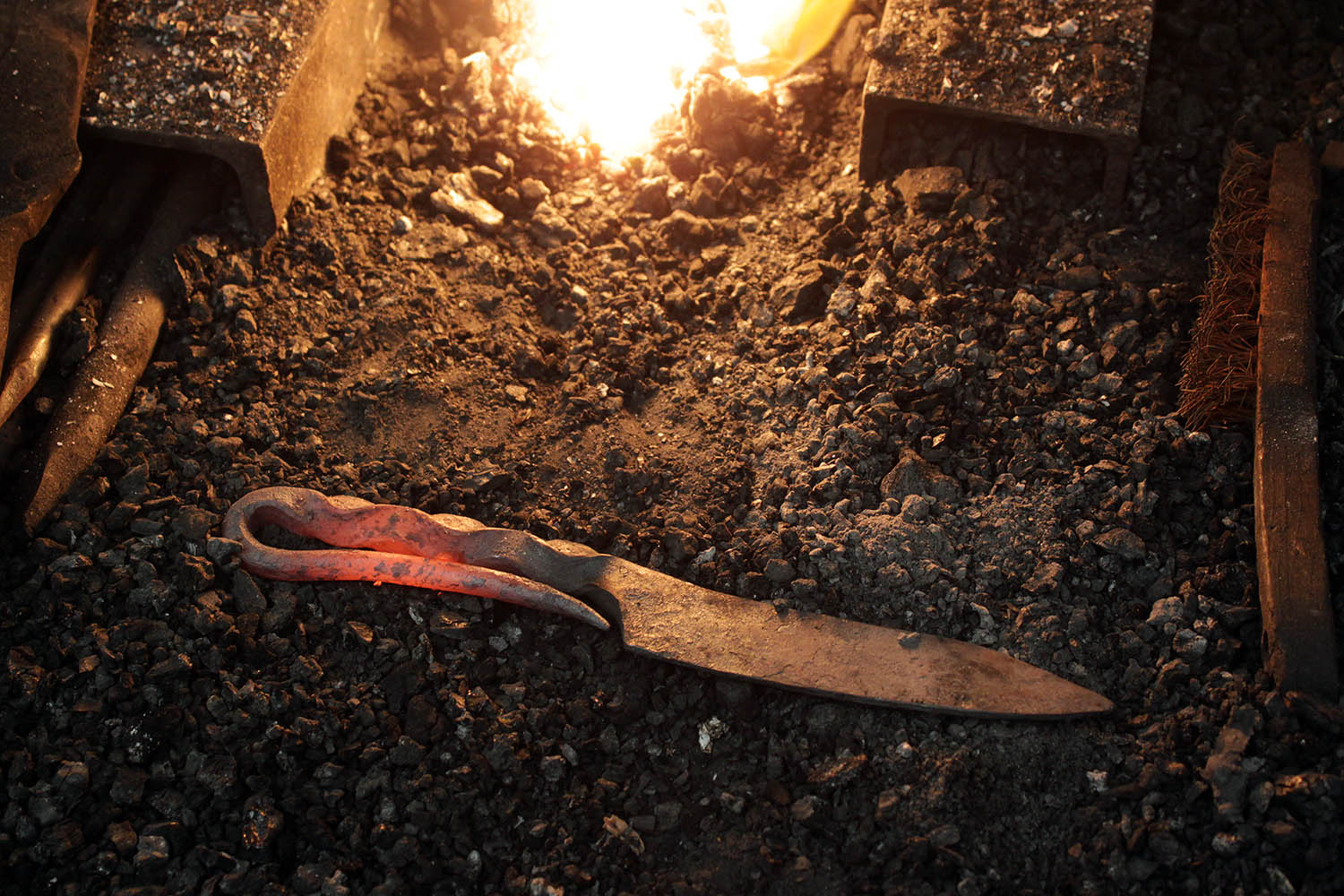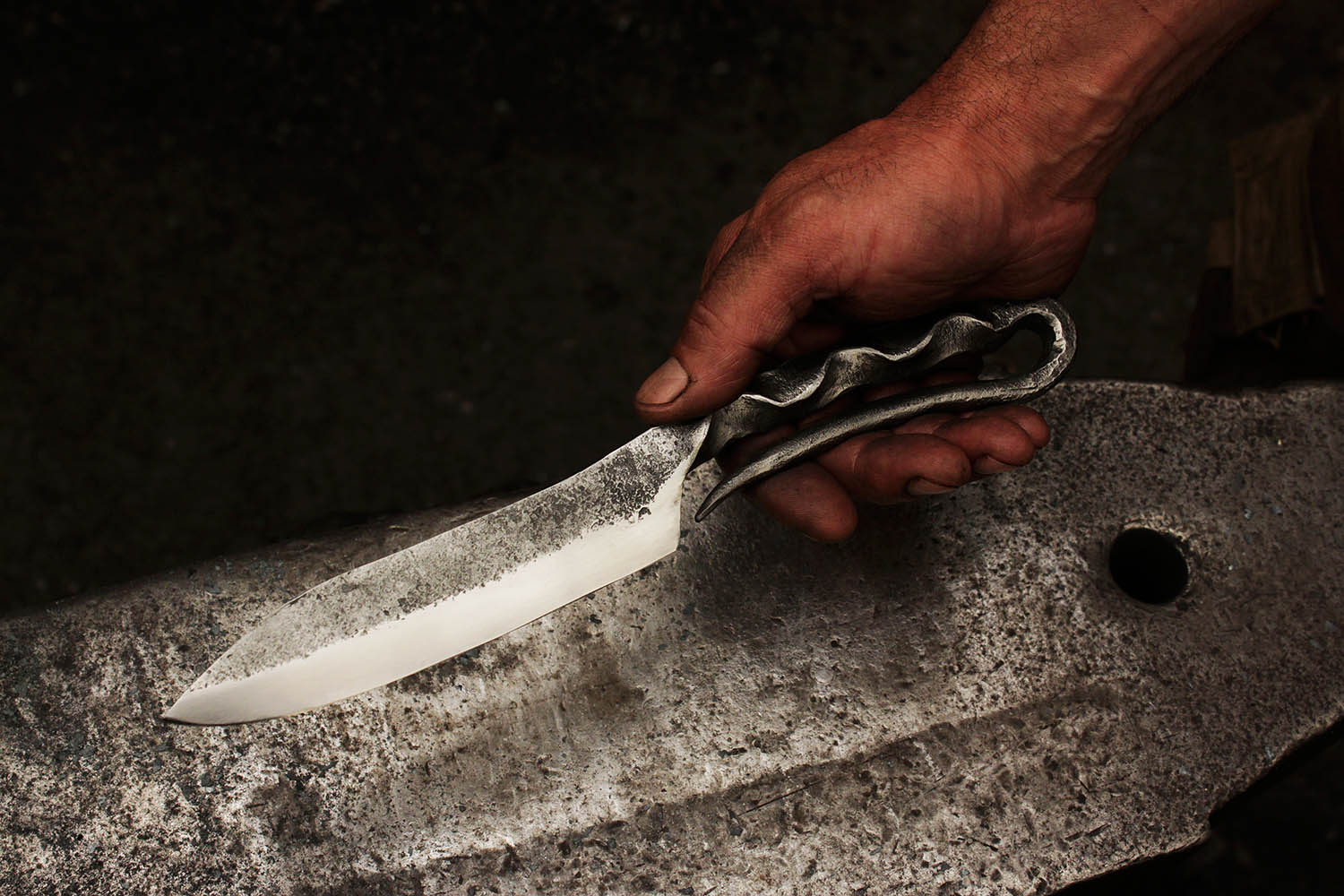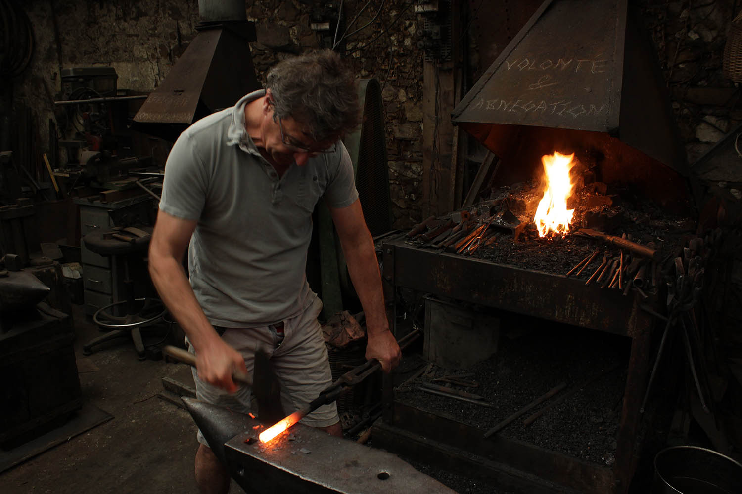 Arisan compétent et passionné, Jerome s'est forgé ce superbe brut de forge à la maison. Un beau défi pour maintenir la cohérence des lignes de ce couteau forgé pleine masse.