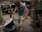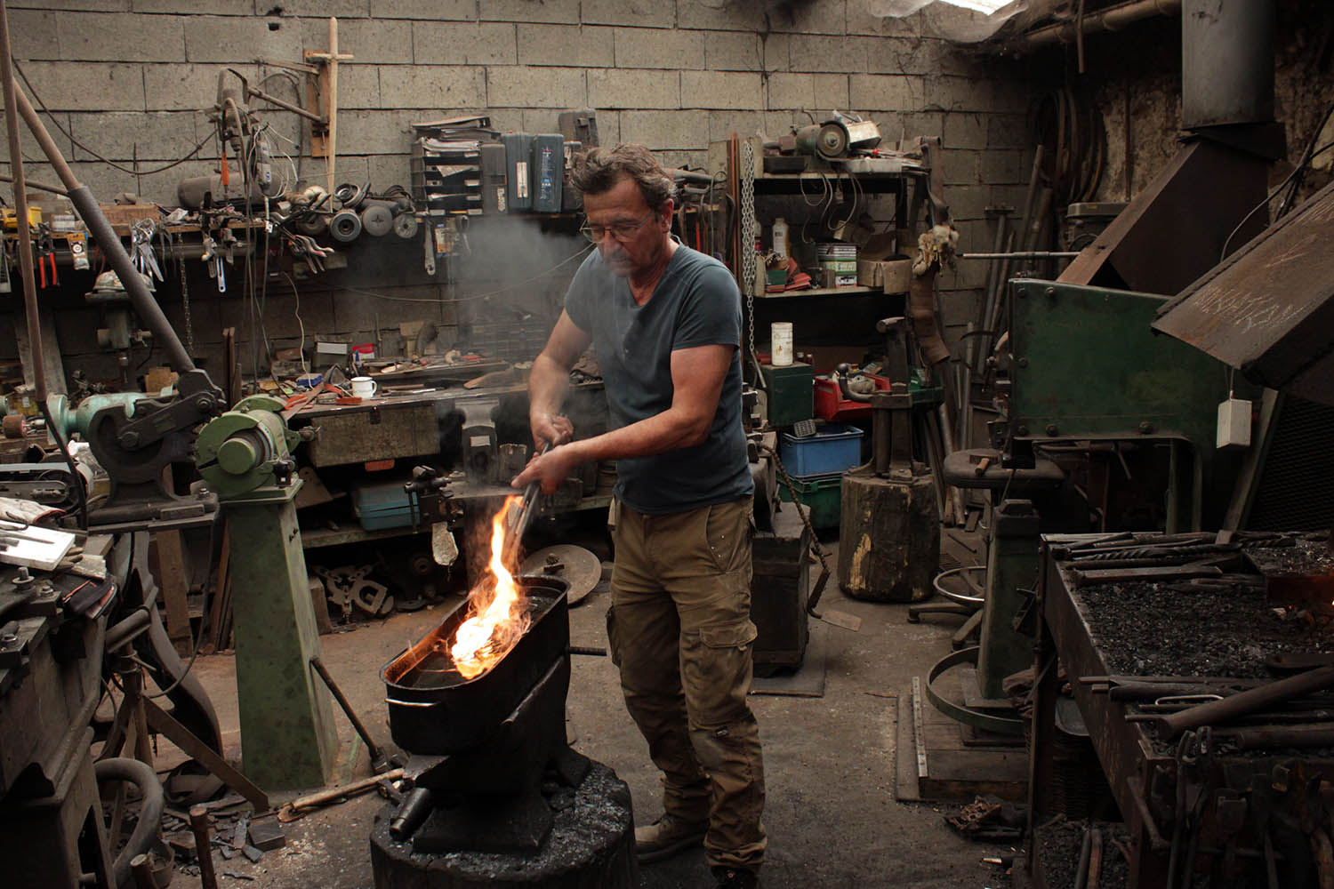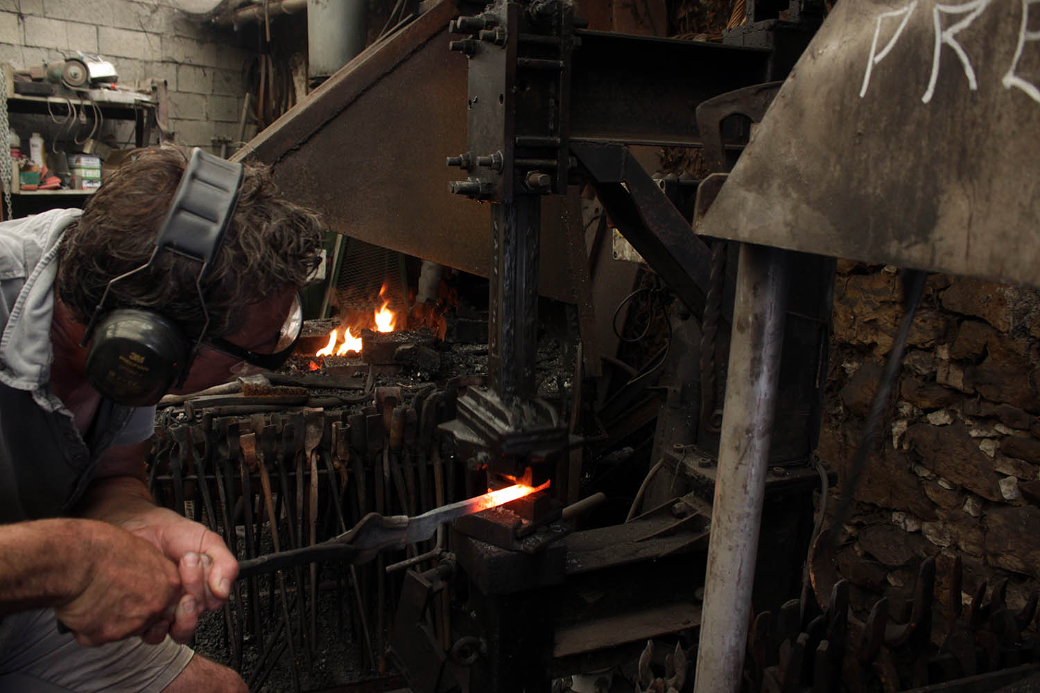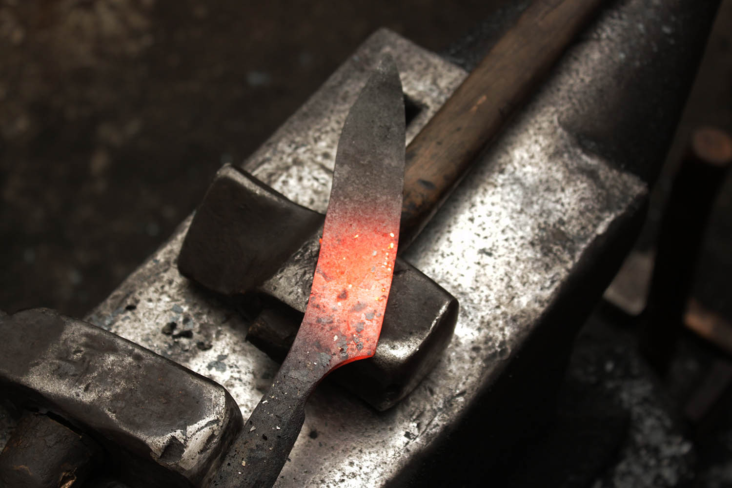 Arisan compétent et passionné, Jerome s'est forgé ce superbe brut de forge à la maison. Un beau défi pour maintenir la cohérence des lignes de ce couteau forgé pleine masse.