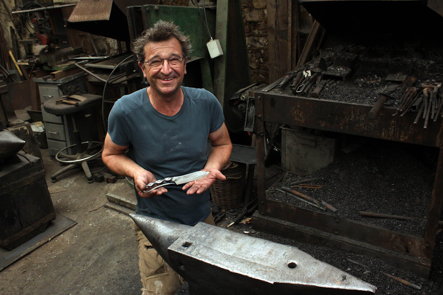 Artiste et artisan, Jérome a testé ses compétences sur ce beau couteau brut de forge. Tout en ligne et en efficacité cette lame est redoutable.
