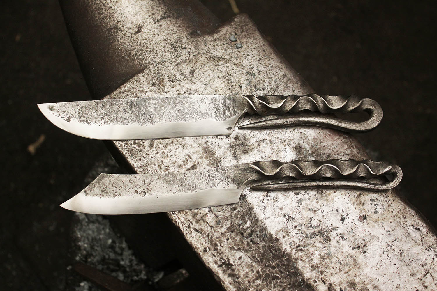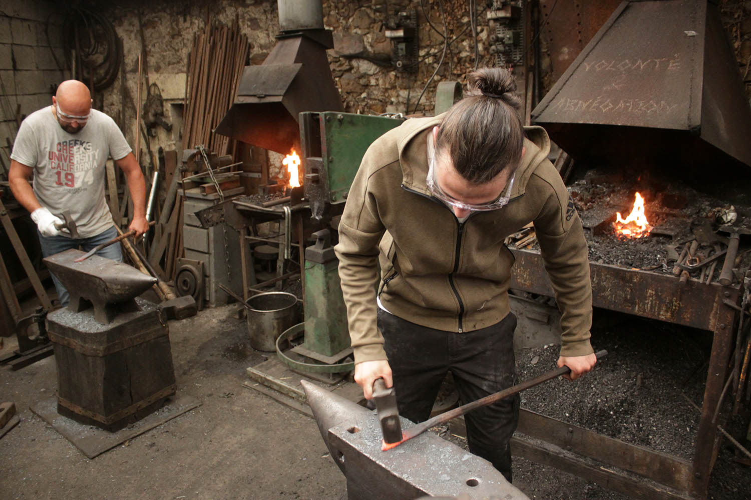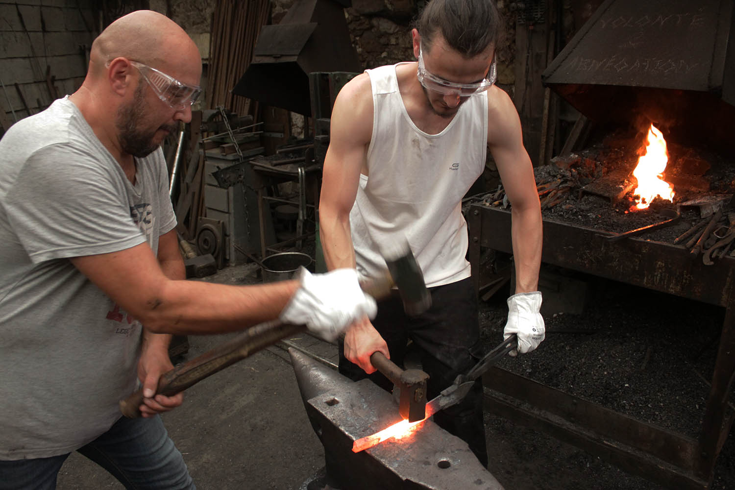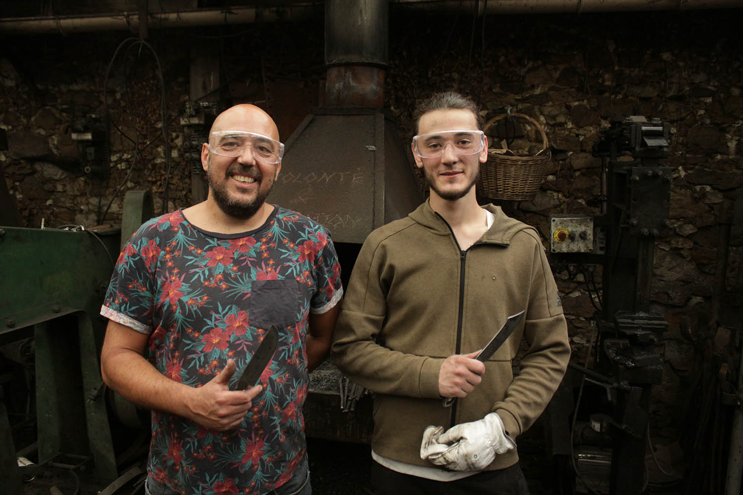 Père et fils pour un stage de forge comme on les aime; regardez ces 2 magnifiques couteaux brut.
