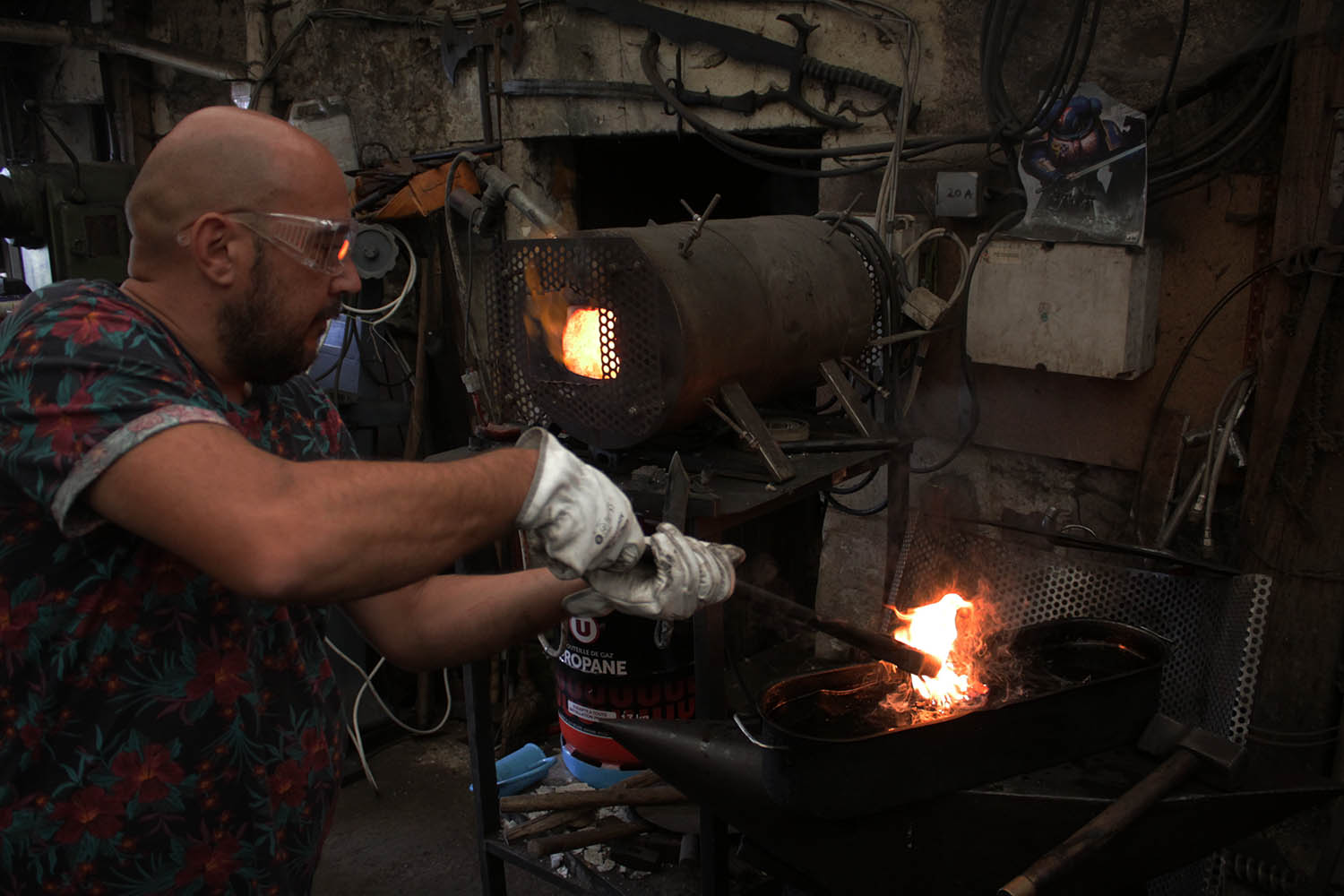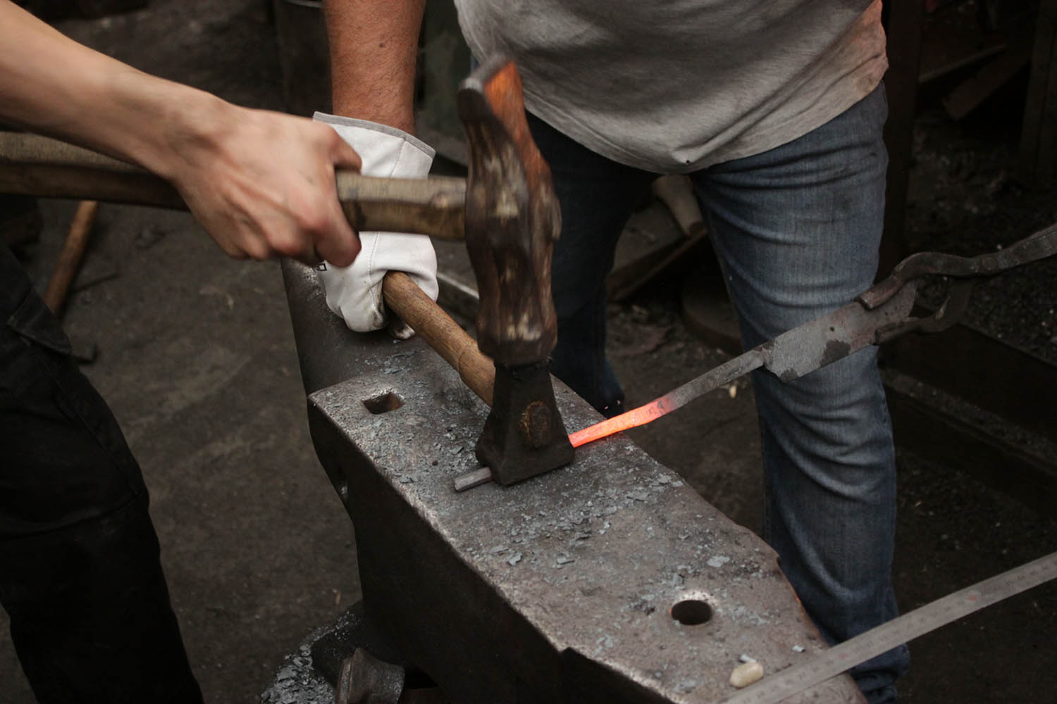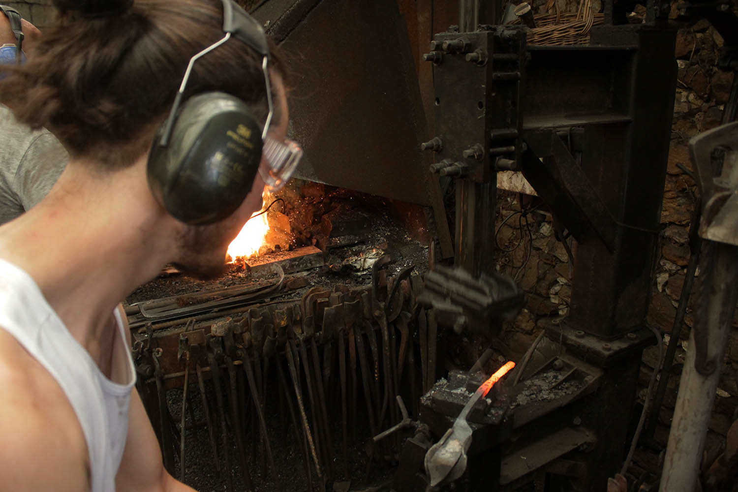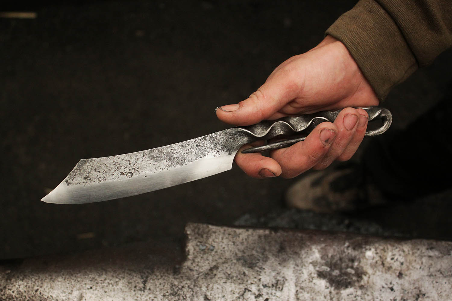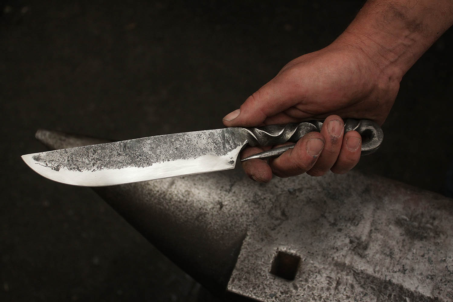Père et fils pour un stage de forge comme on les aime; regardez ces 2 magnifiques couteaux brut.