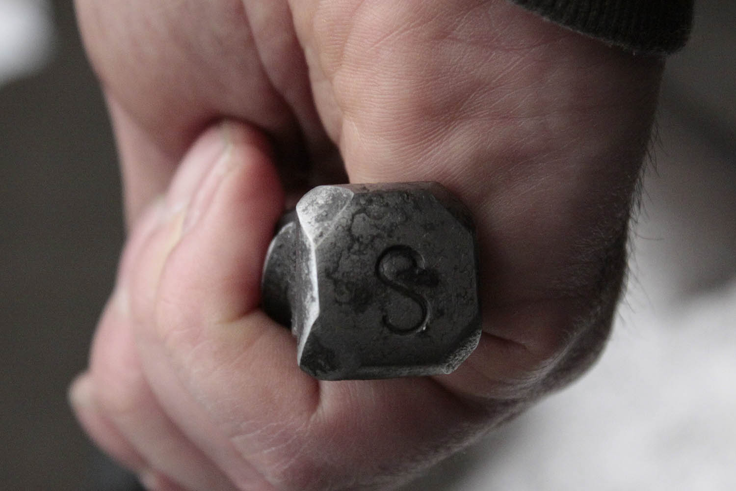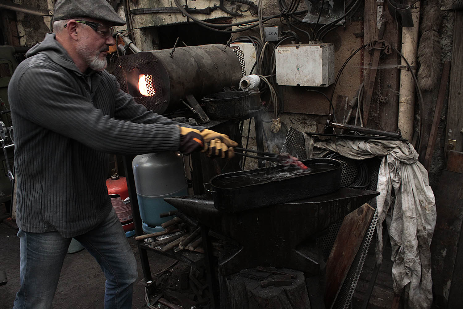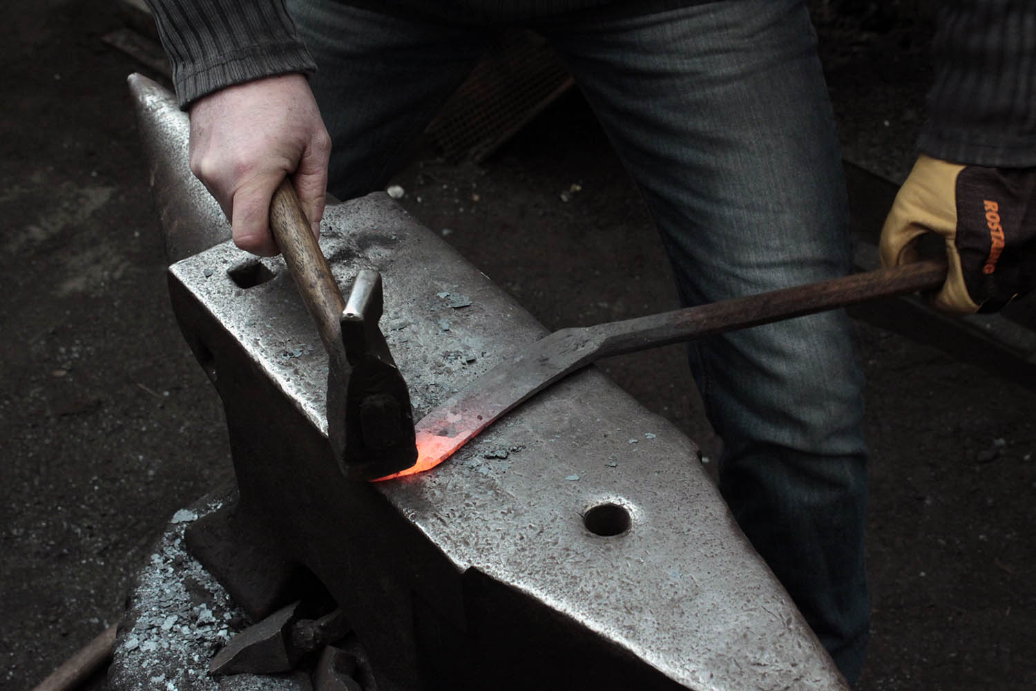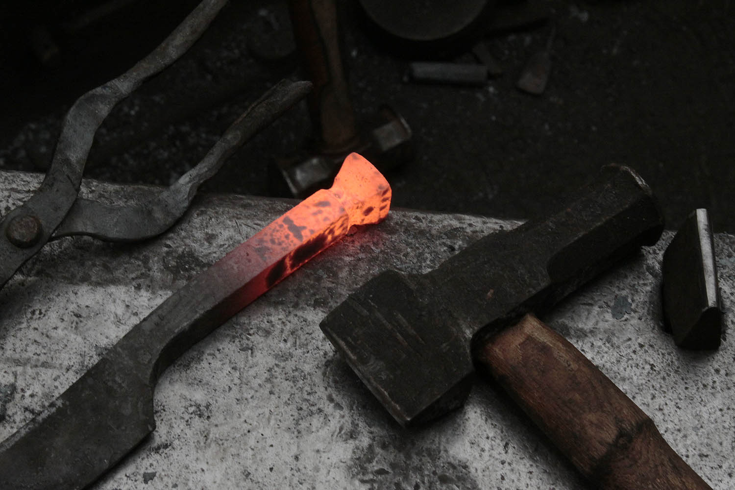 Passionné de reconstitution, de spectacle et d'équitation, ce jeune forgeron est venu faire son premier stage de forge pour réaliser ce gros couteau brut de forge.