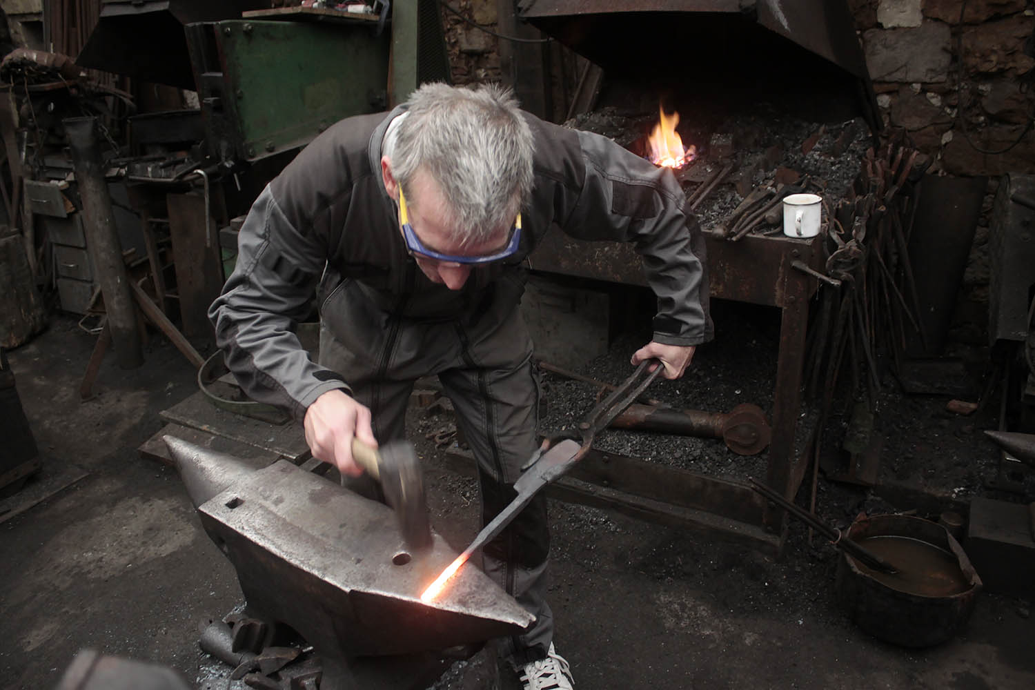 Sympa comme 1er stage de forge pour ce passionné d'électronique venue tester les enclumes.