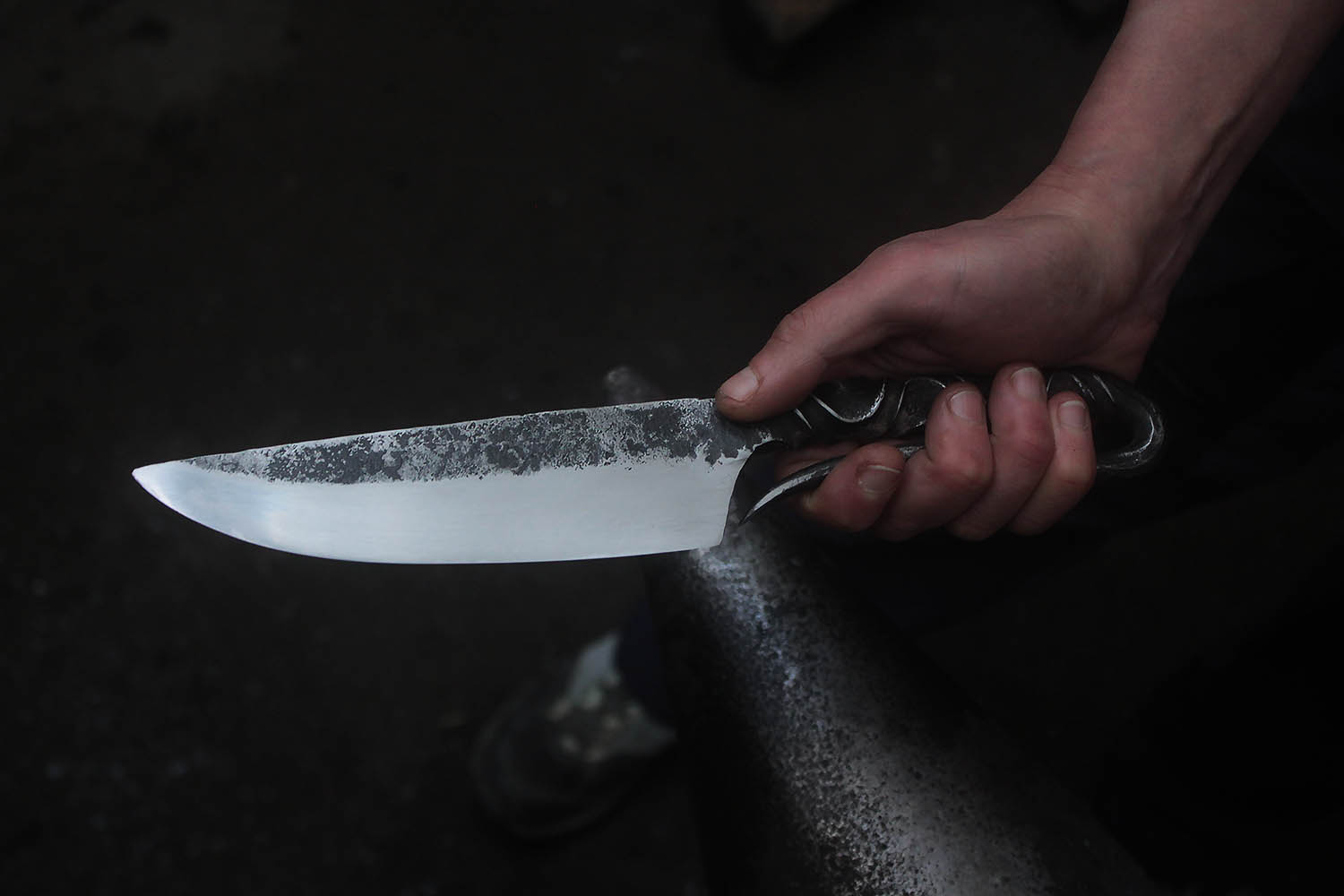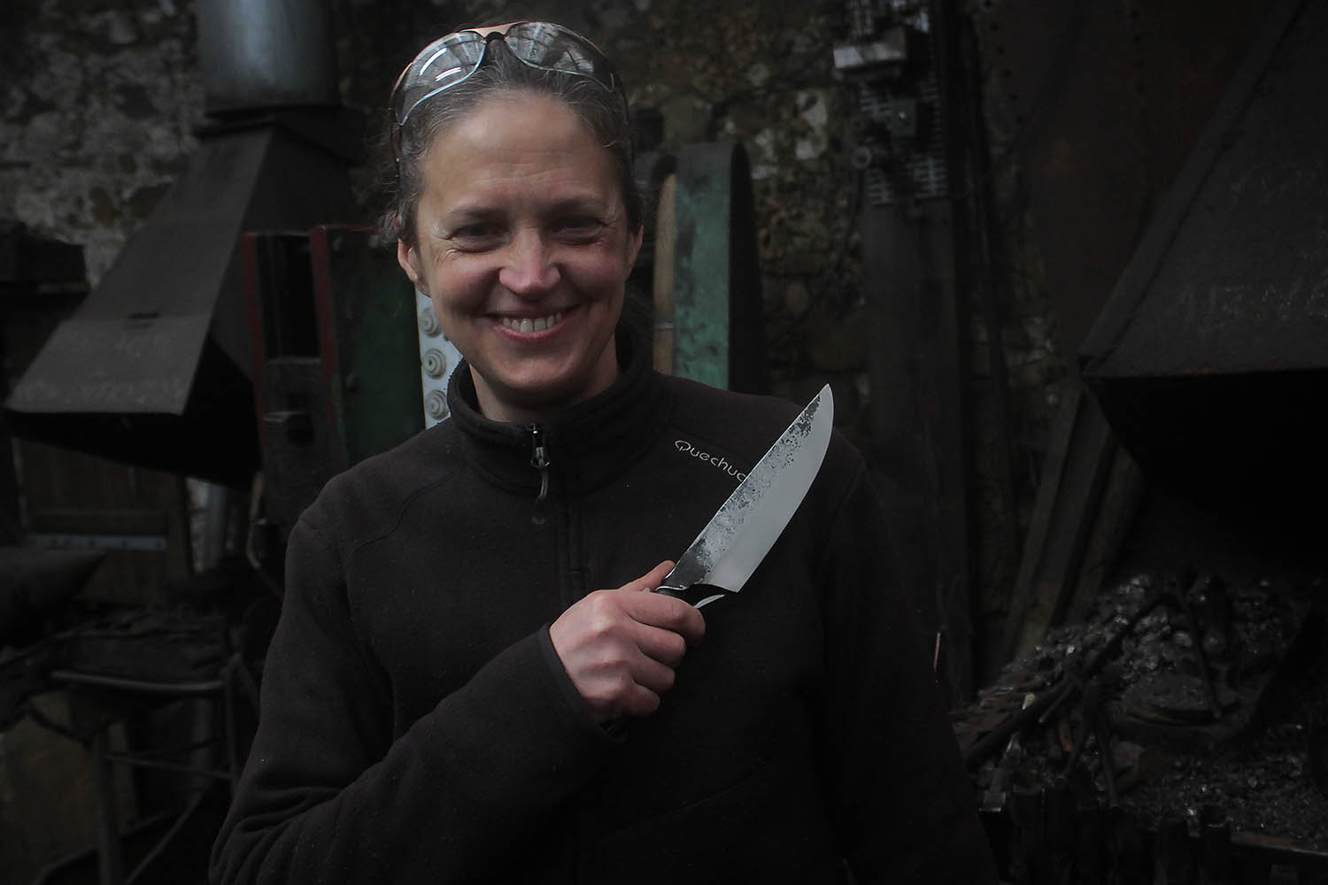Premier stage de coutellerie pour Lisa et magnifique réalisation d'un couteau de chef entièrement forgé. Un beau défi.