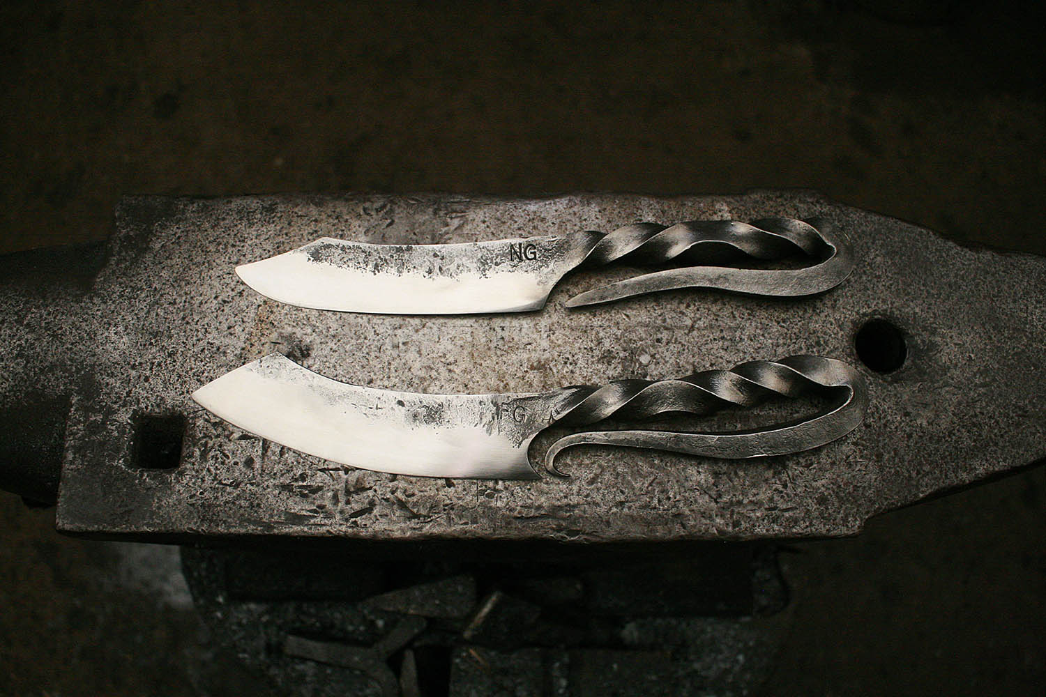 Père et Fils, passionnés de forge ! franck et Noa se sont organisés un bon gros weekend pour s'eclater au son des enclumes. Superbes couteaux brut de forge pour ce 1er stage.