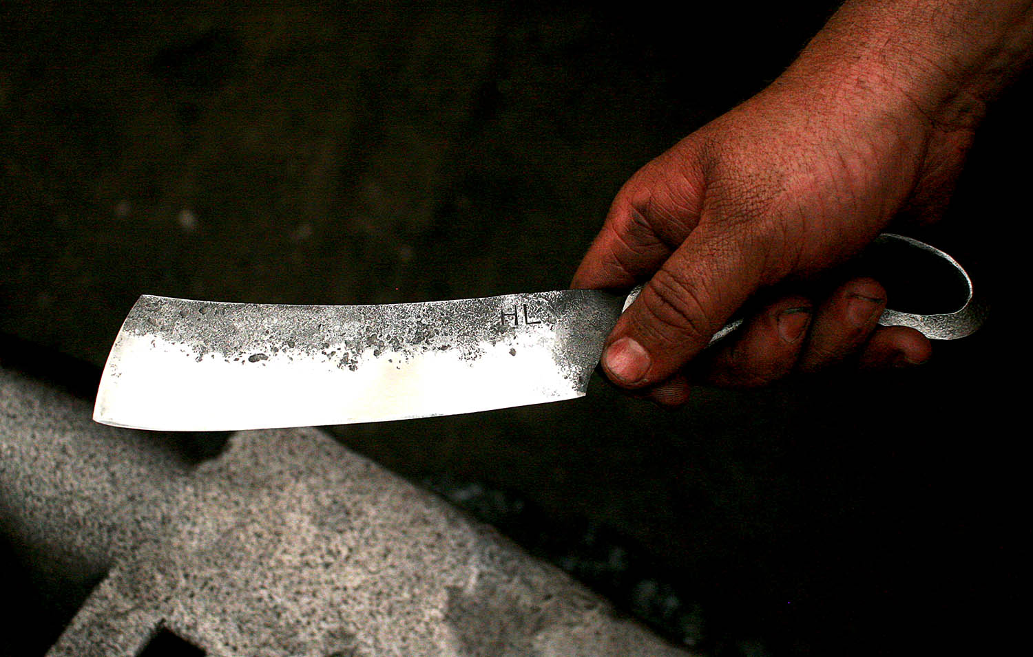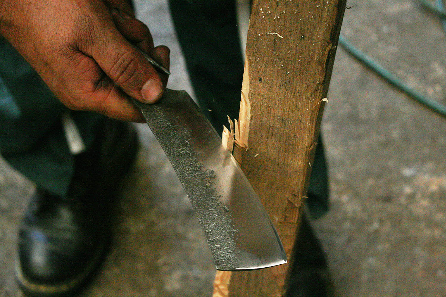Laurent a décidé se forger une lame tres atypiques. Un stage de forge qui a donne un couteau brut avec l'avant est plus massif que l'arrière. Vous n'imaginez pas l'efficacité du truc !!!