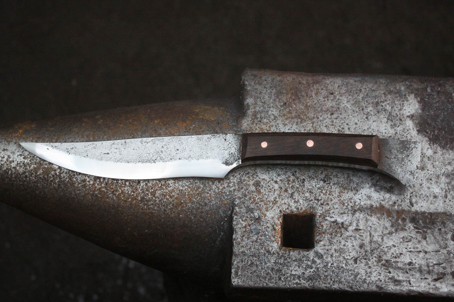 2eme passage à la forge pour Yves. Au programe, un superbe couteau tout en ligne avec manche en wengé et rivets cuivre.
