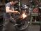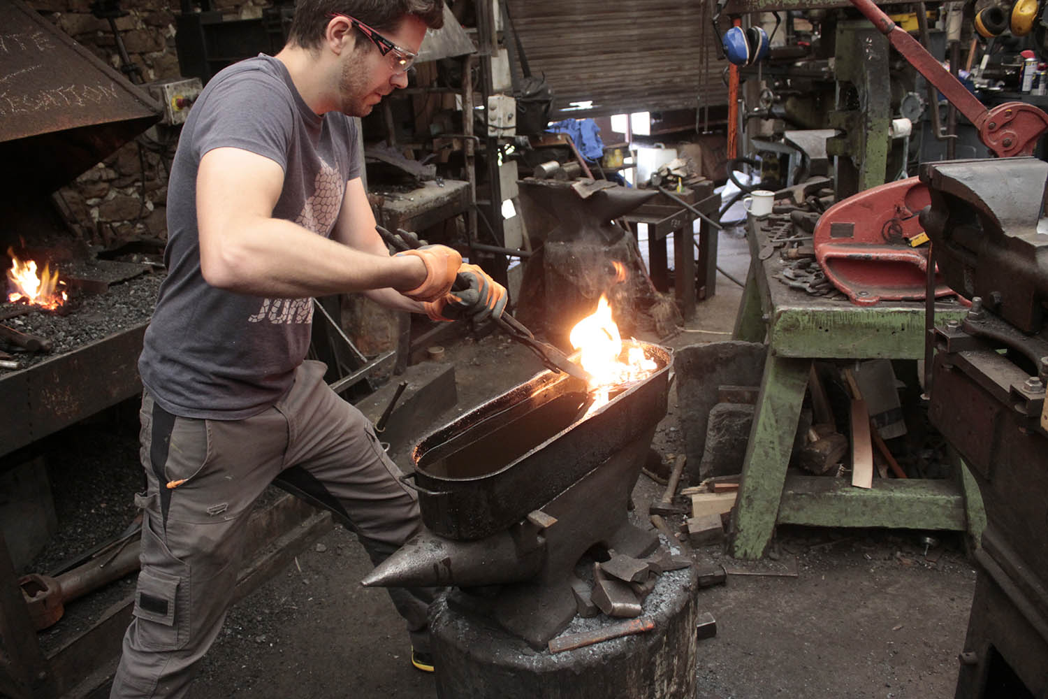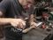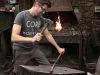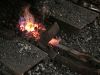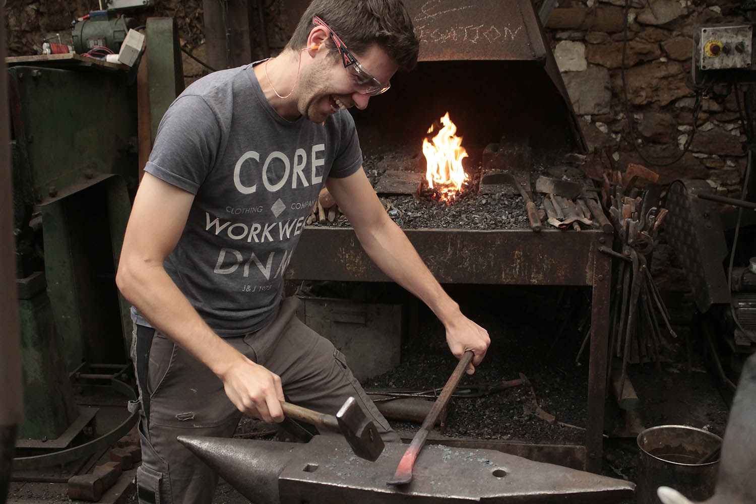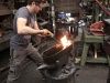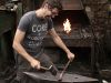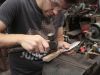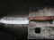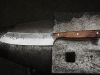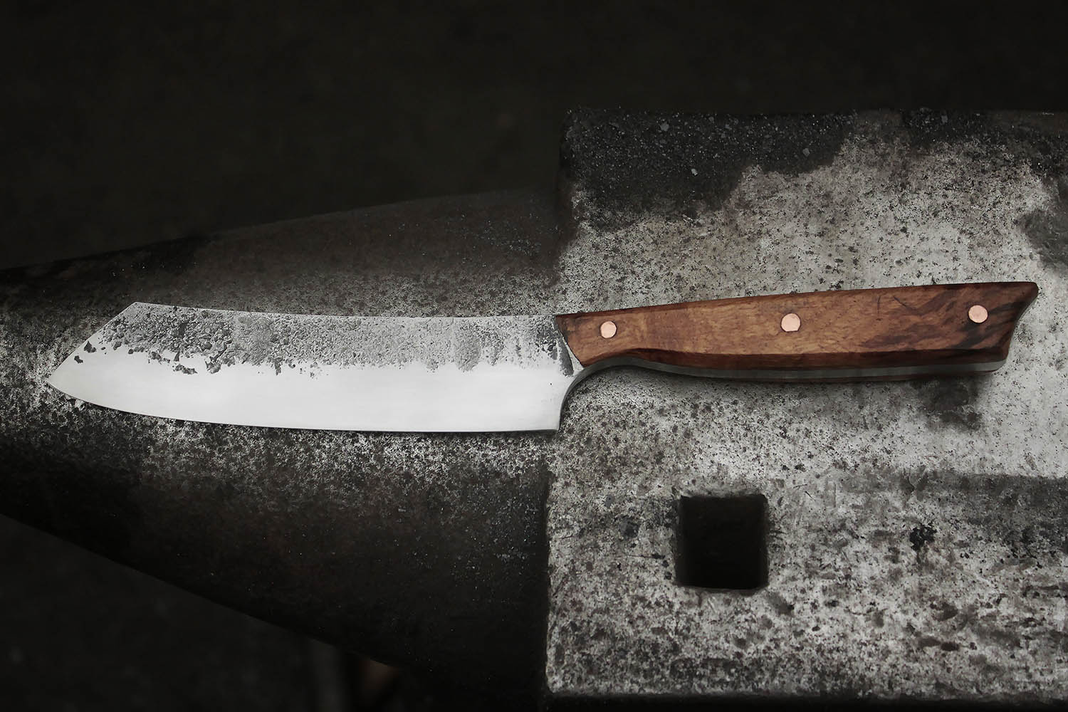 Manche en pommier et rivet en cuivre pour ce couteau d'inspiration Bunka