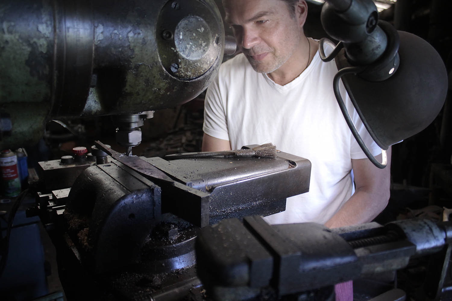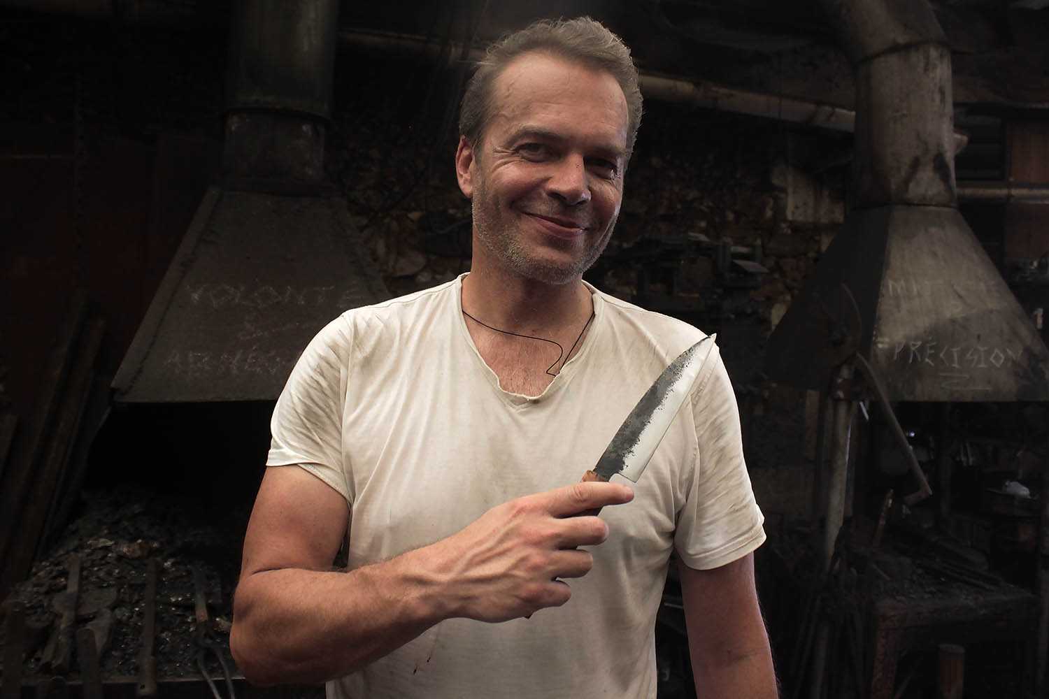 Superbe couteau pour ce passionné de cuisine qui a bravé la canicule pour faire cette magnifique lame avec manche en prunier sauvage du jardin; Bien joué !