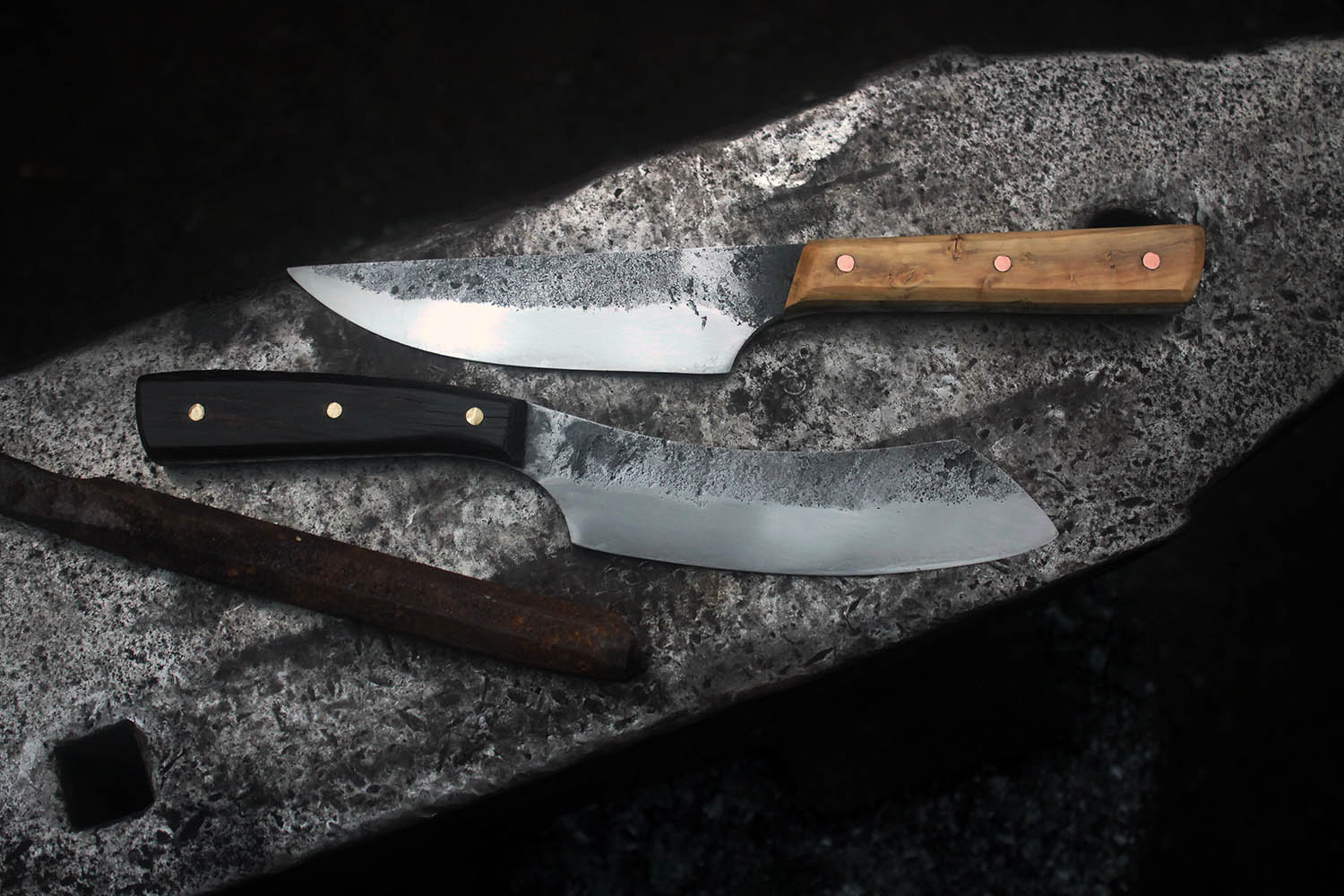 Buis et ébène pour ce duo de couteau de cuisine pour un premier stage de forge.