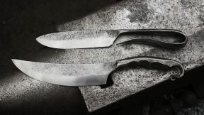 Ces couteaux sont réalisées avec des pointes effilées et des manches entièrement façonnés au marteaux. Pas d'usinage, pas de torsades ou de design trop complexe. Uniquement du travail sur la géométrie et la prise en main.