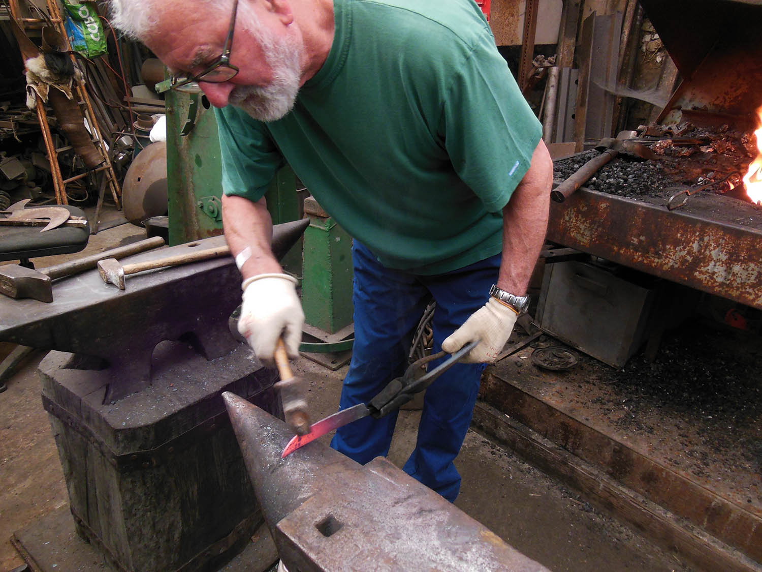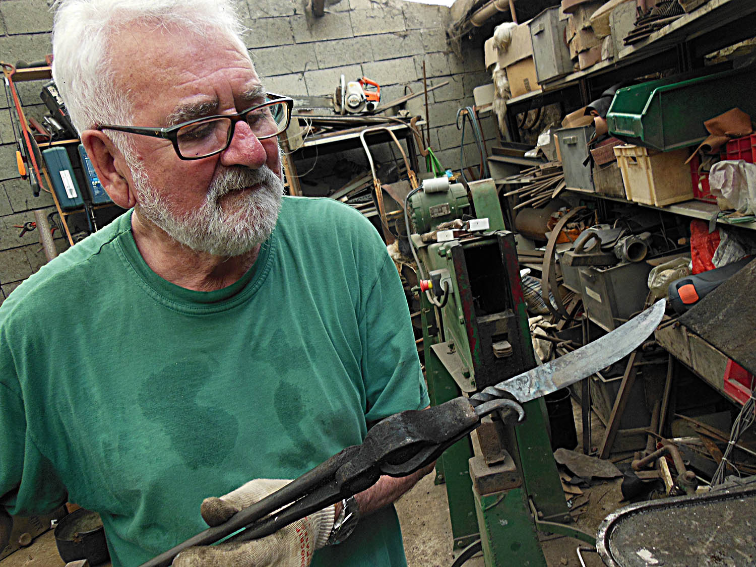 Jean est un retraité plein d'énergie, et de par son expérience d'affuteur, je peux dire que je ne faisais pas le fière que je l'ai vu débarquer à la forge. Quelque coup de marteau plus tard et hop, la complicité était la et j'ai découvert un gars super sympa. Bien joué l'ami !!!