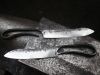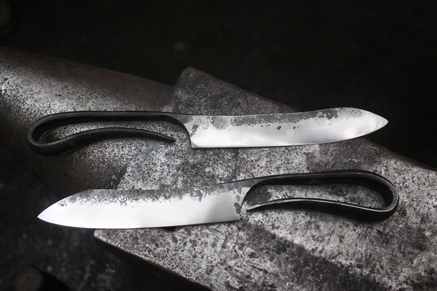 2 compéres à la forge, cela donne un tres beau travail sur 2 couteau brut tout en élégance.