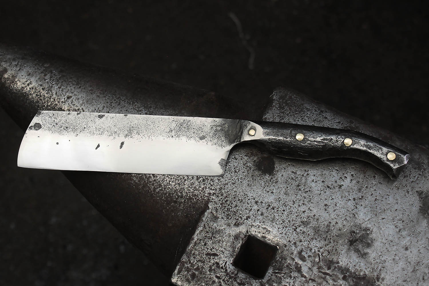 Au programme, un superbe hachoir avec manche refoulé et réhaussé de laiton.