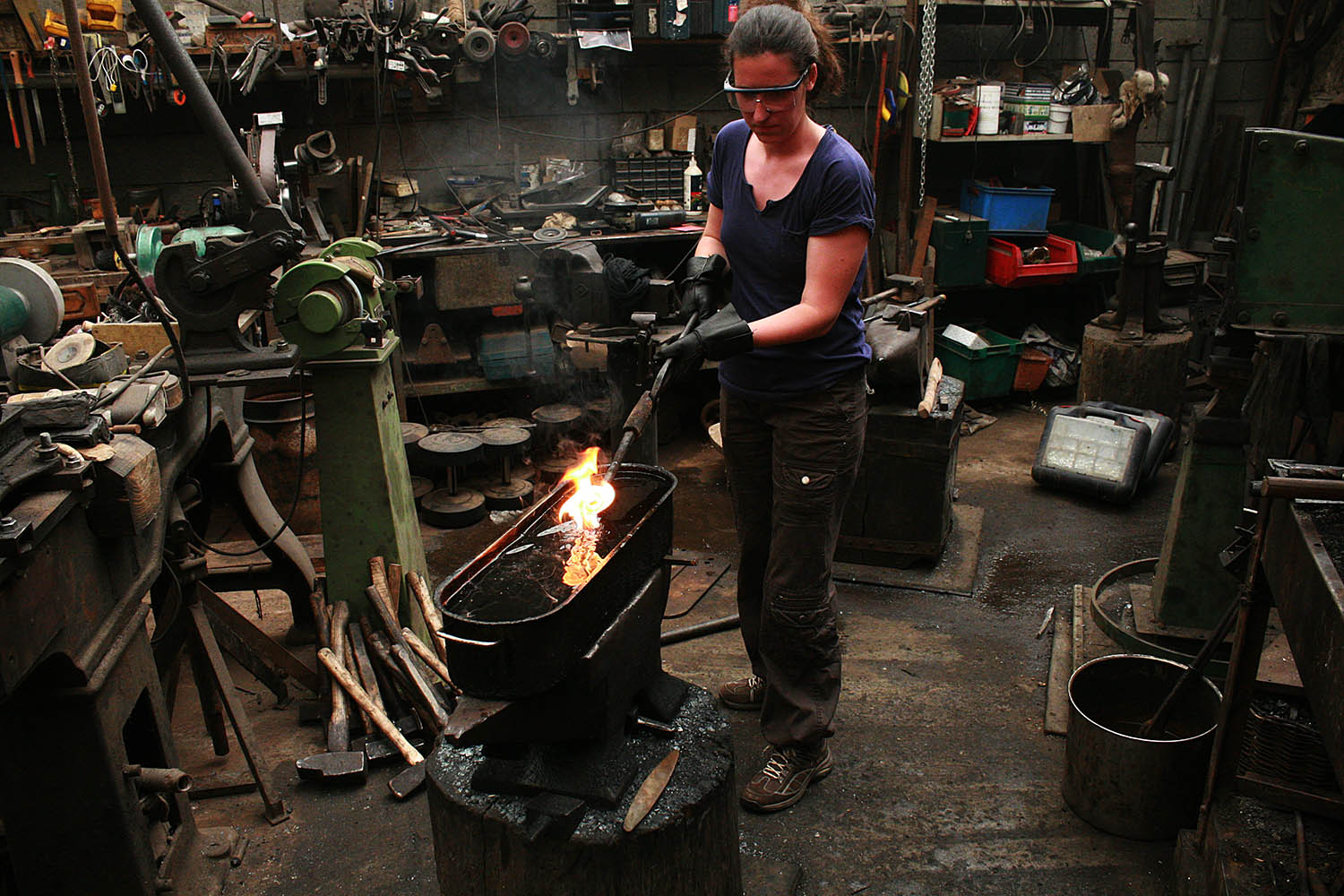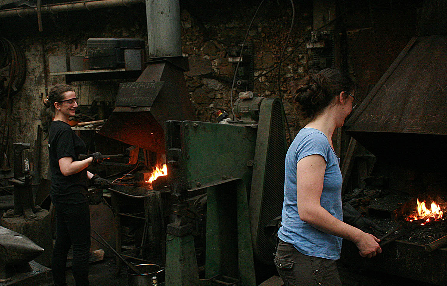 Girl power à la forge ! Ces 2 dames sont passées à la maison pour se tester sur les enclumes. Un stage de forge qui sonne comme une belle revanche sur les hommes qui croient les femmes incapables de forger (car oui, il y en a encore) !