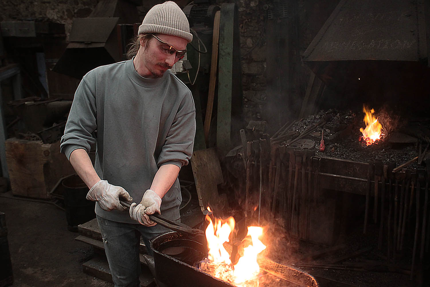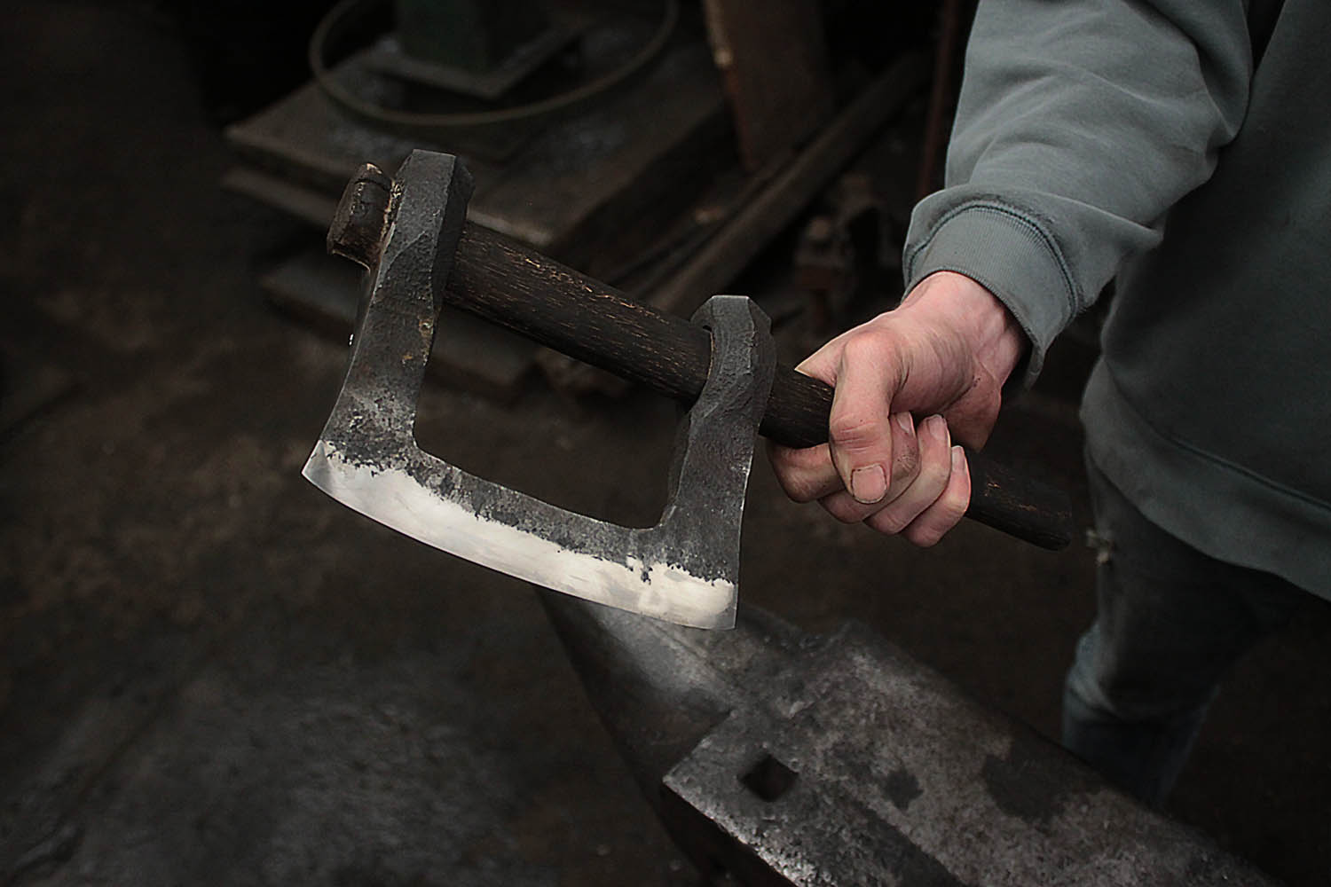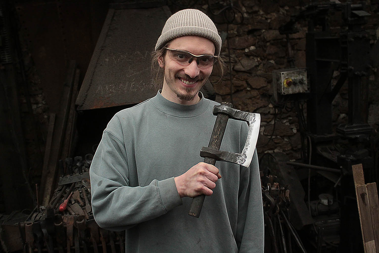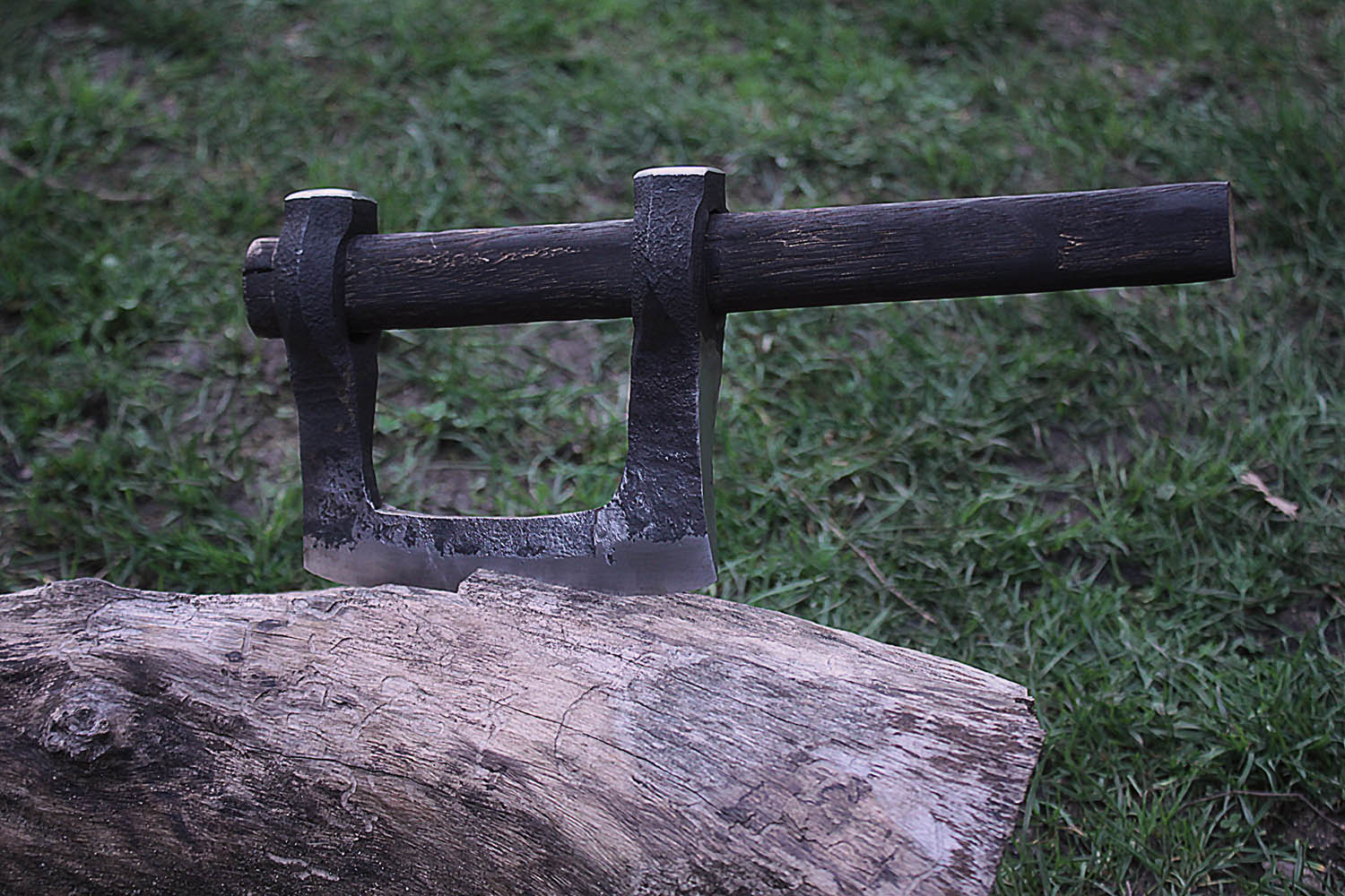 Nikola a forgé cette hache à double tête comme un grand défi personnel. C'est autre chose qu'un stage de coutellerie, et ça envoie terriblement.
