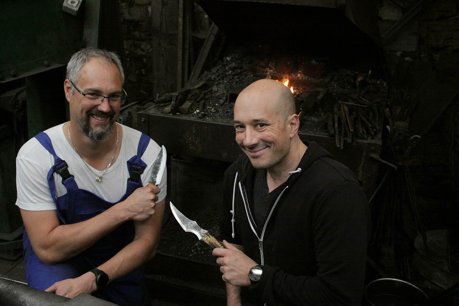 Stage de forge entre copains pour 2 couteaux forgés ben classe. Et on n'oublie pasle contre-tranchant la prochaine fois.