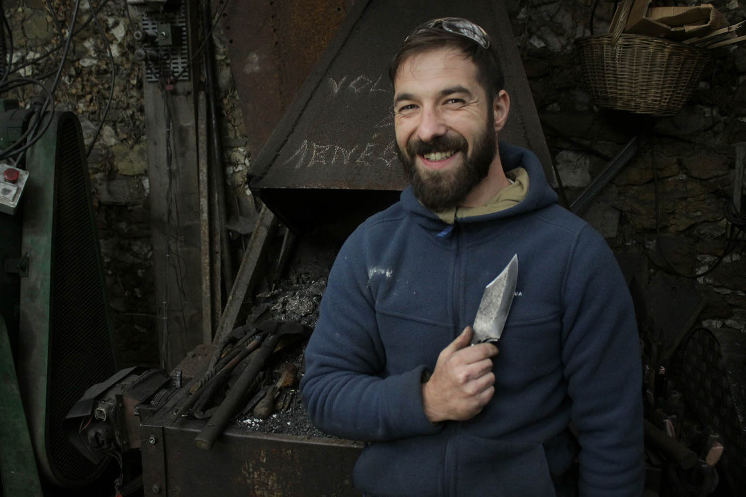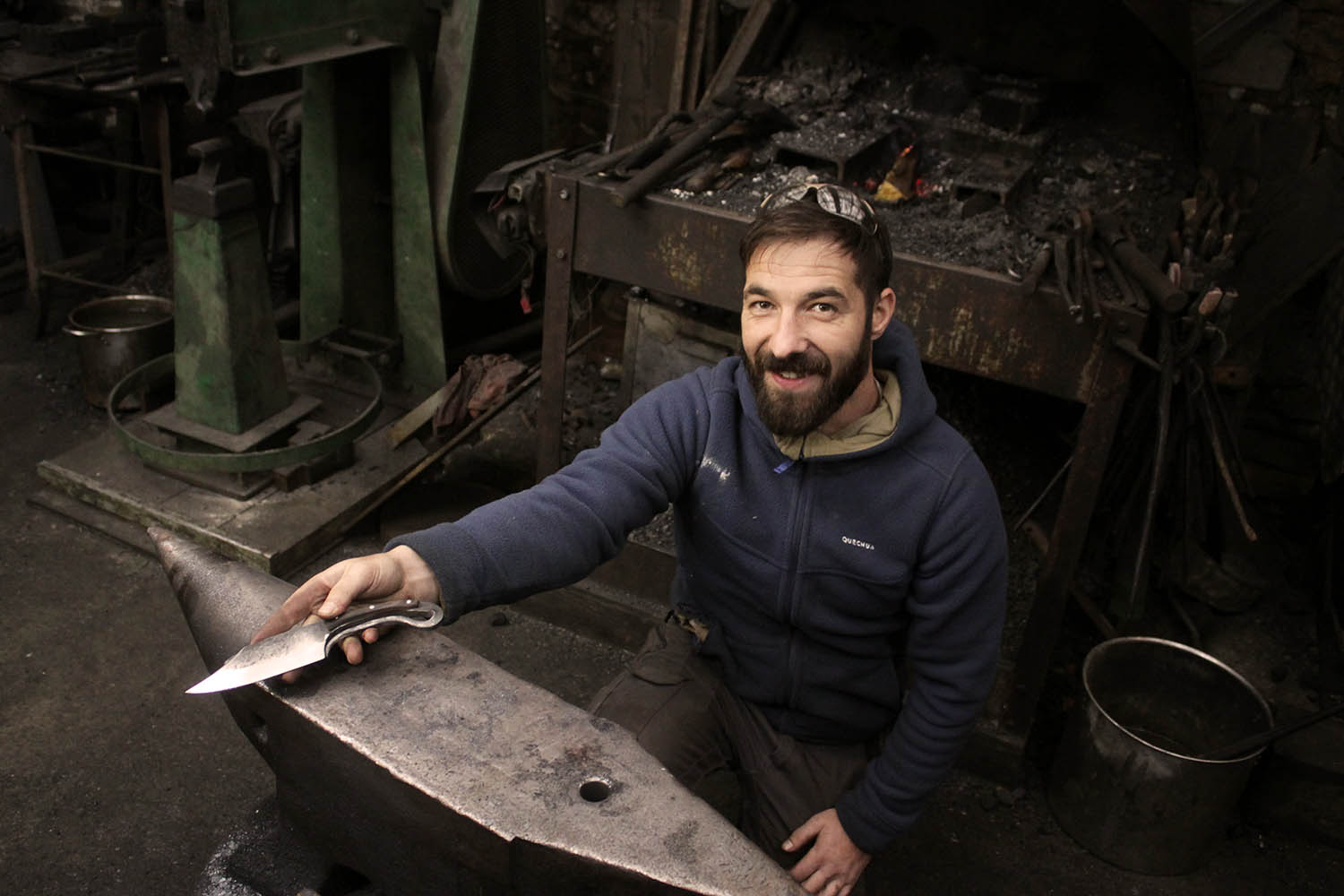 le froid, la pluie et la maladie n'ont pas eu raison de ce gaillard qui a réalisé un magnifique couteau forgé tout en classe et en pique !