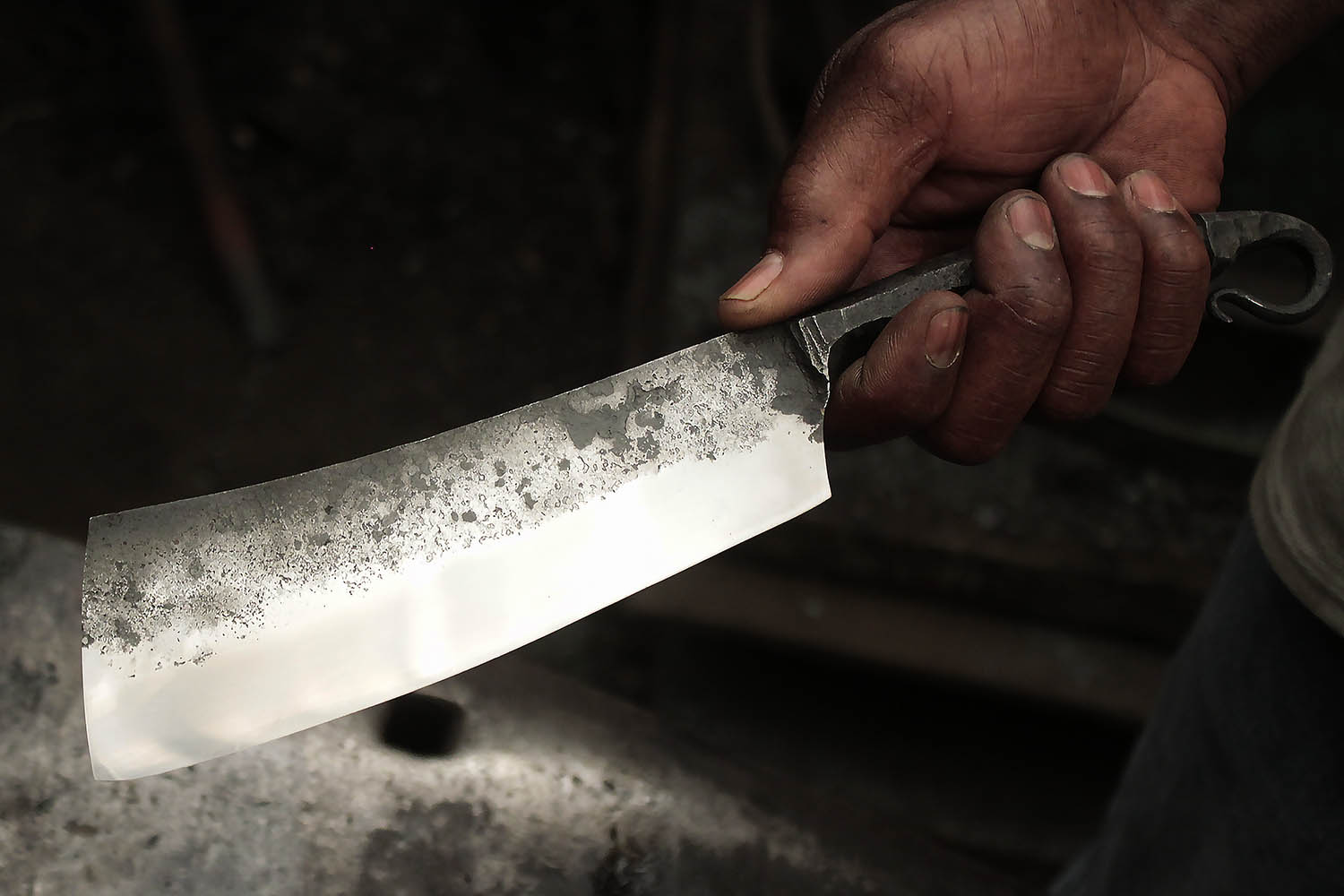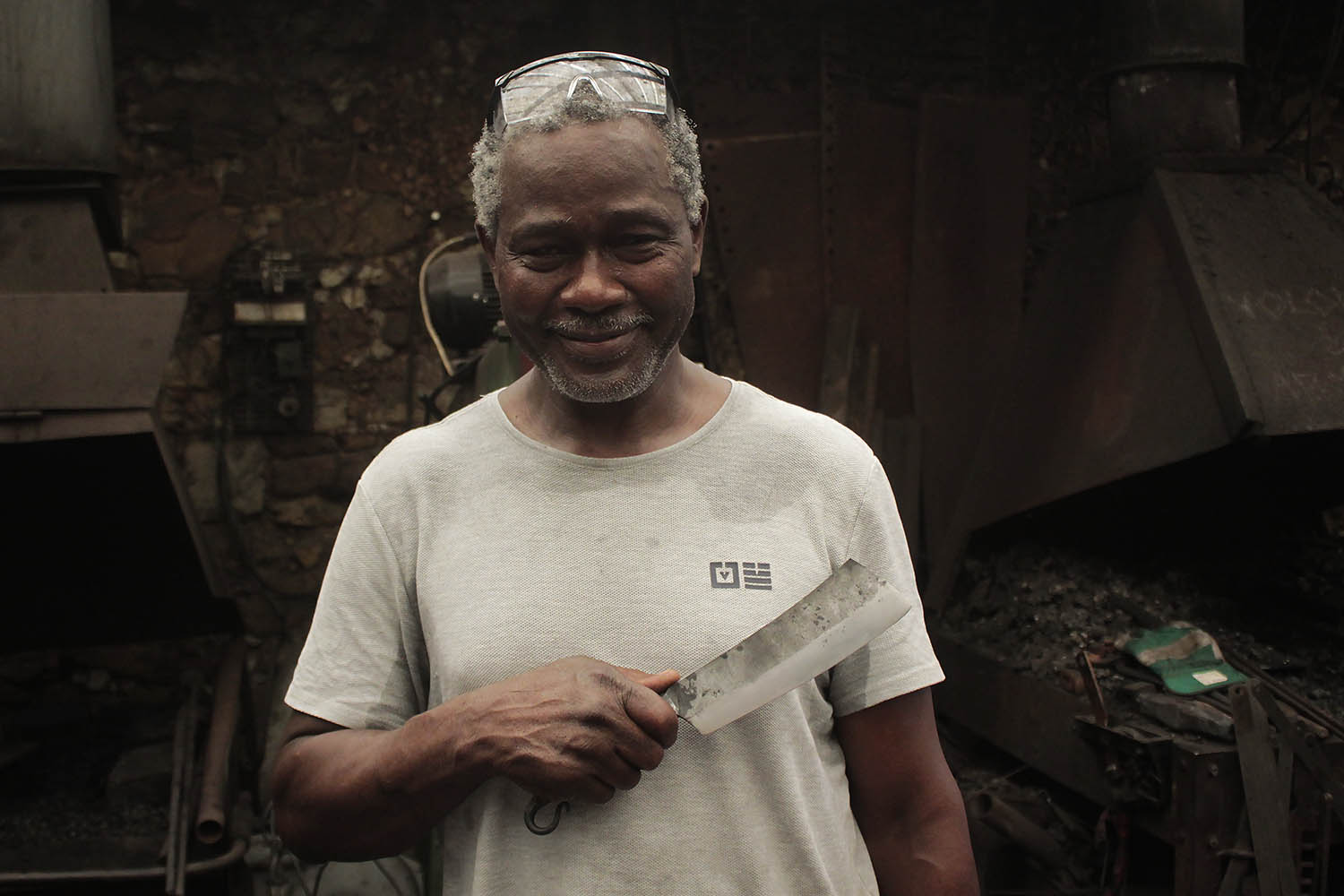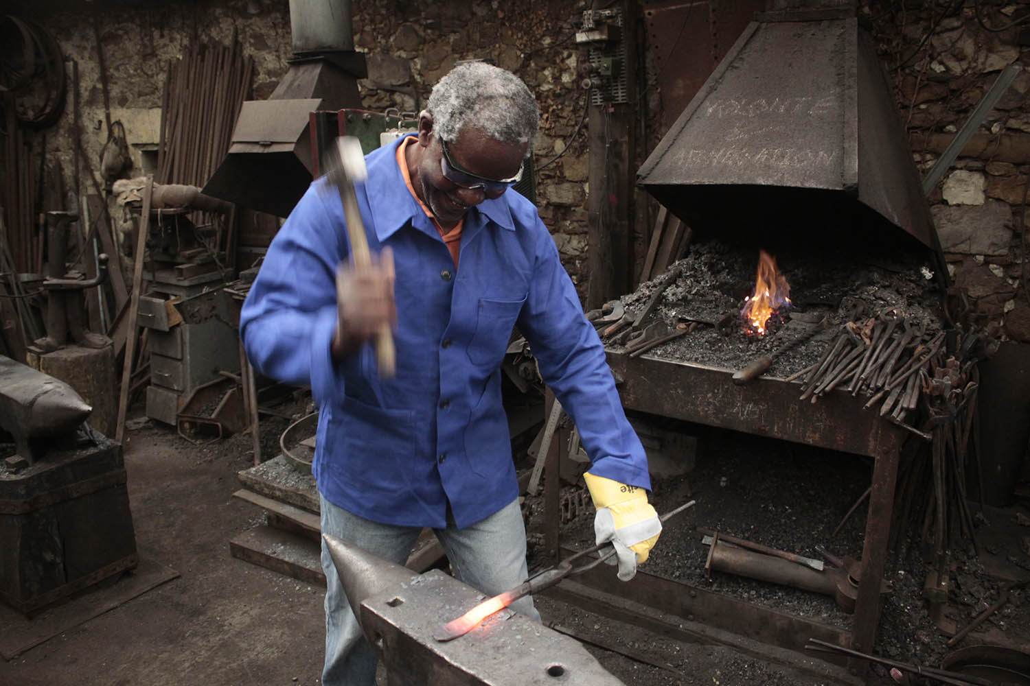 Maintenant retraité sa famille à offert à Kouamé ce stage de forge pour faire sonner les enclumes. Au programme, un énorme hachoir pleine masse. bien joué l'ami.
