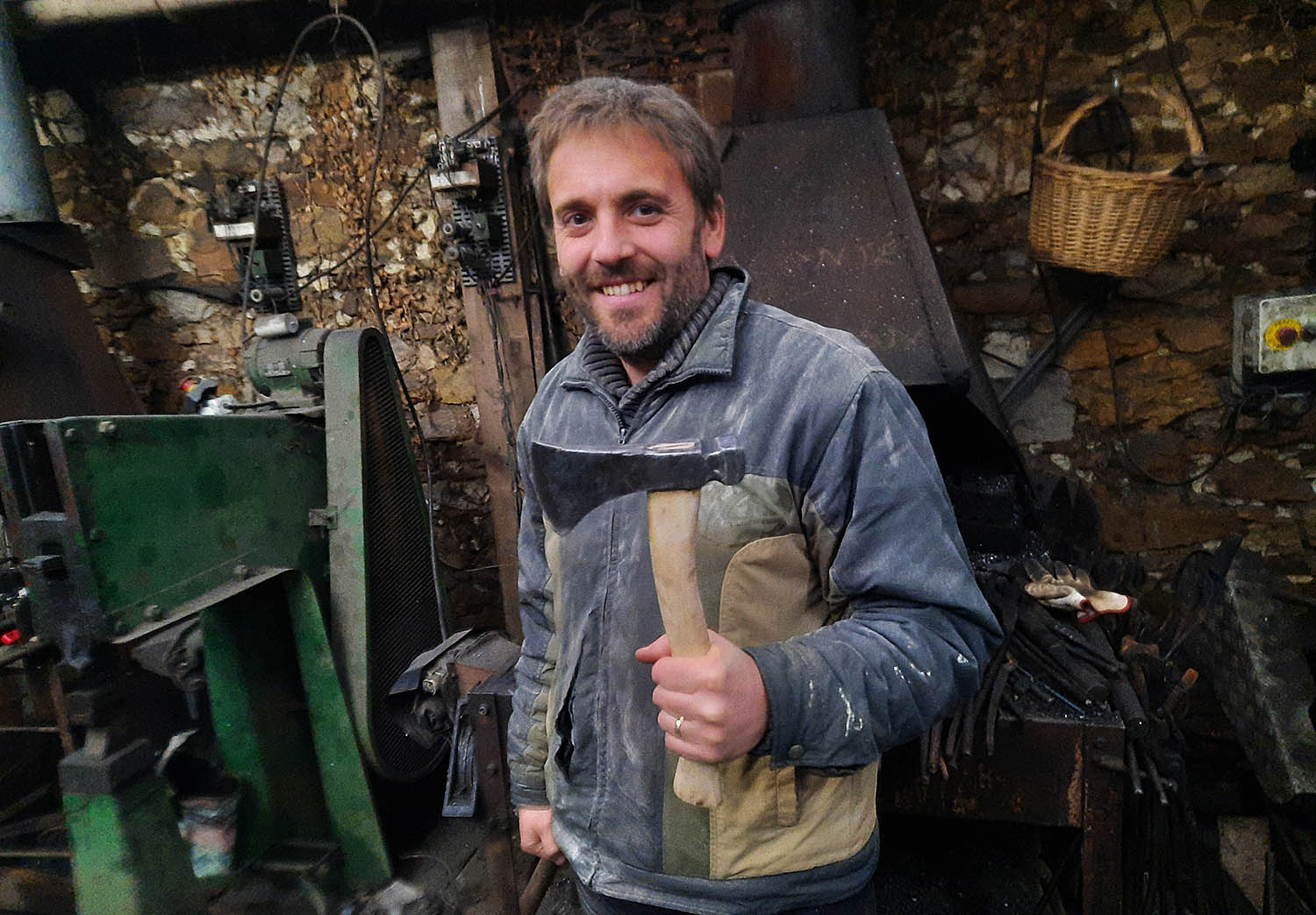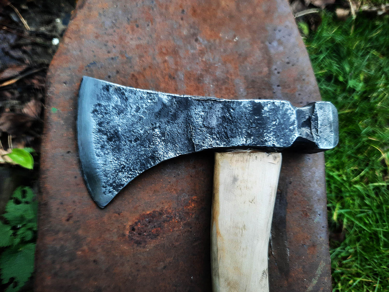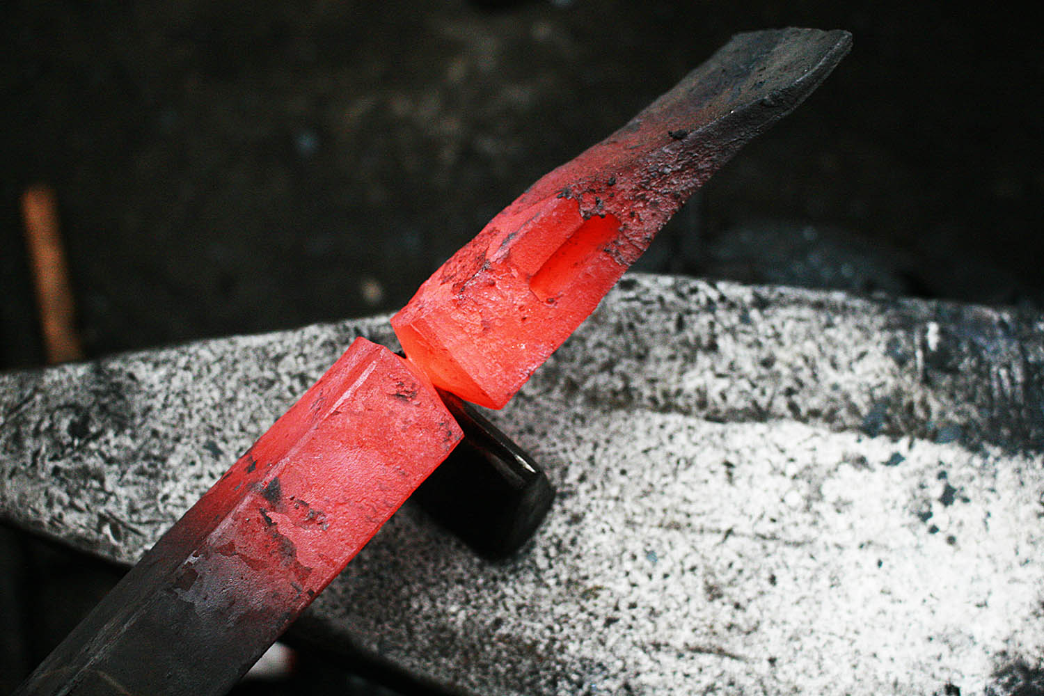 Hache forgée en acier doux avec insert en C130 et C45 soudé au feu à l'arriere pour un marteau sacrément efficace. Ca c'est job !