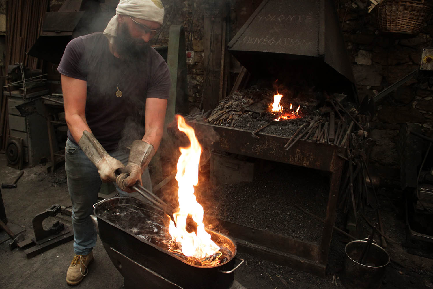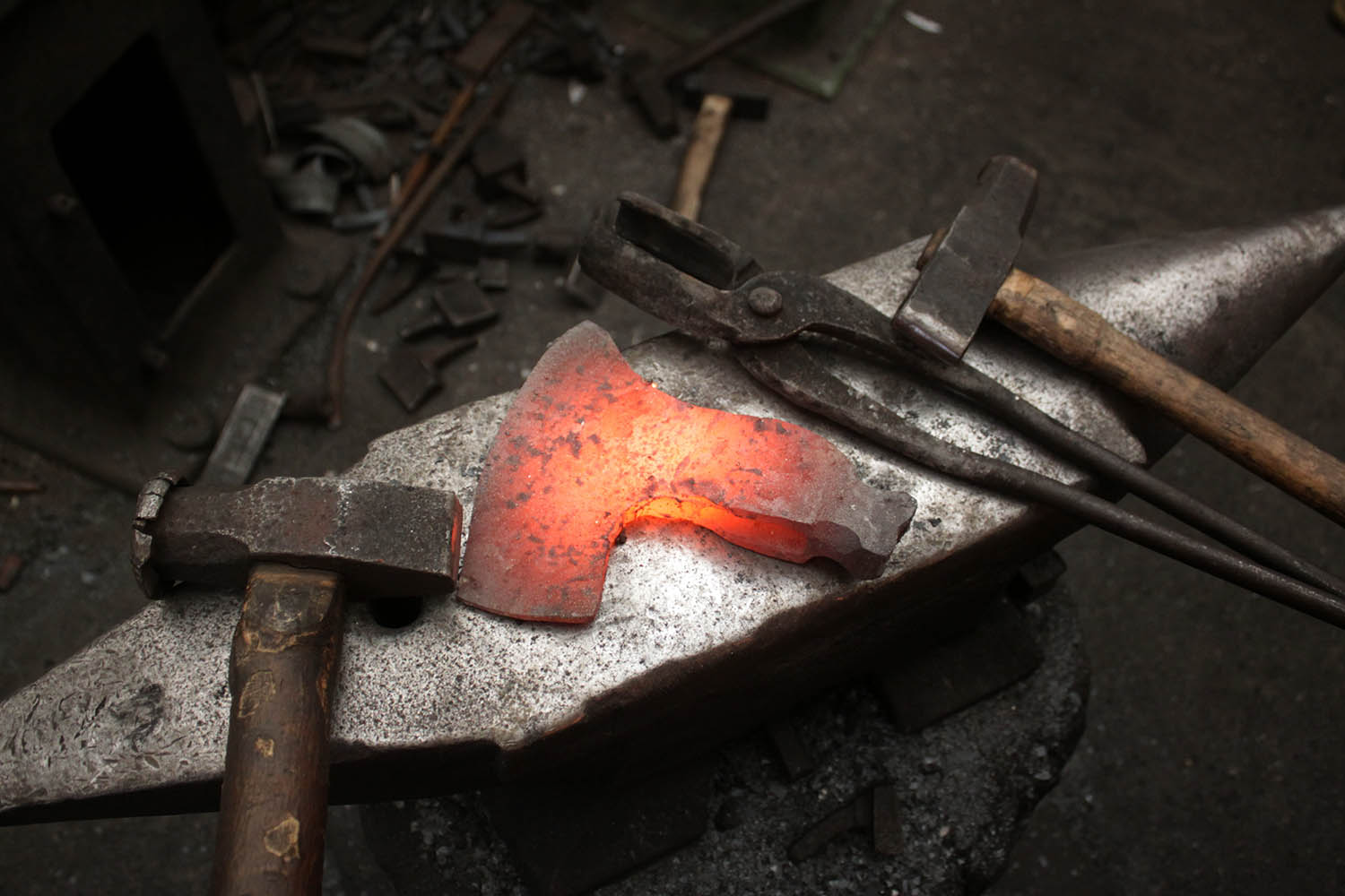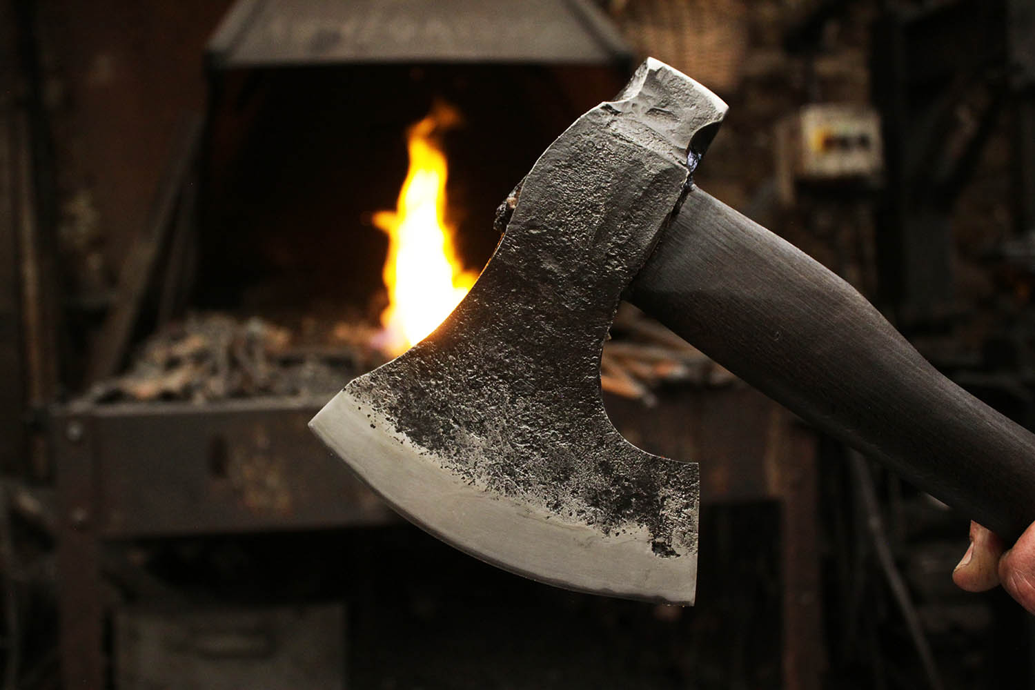 Enorme hache pour ce valeureux forgeron en devenir. Corpe de hache en fer doux et âme insérée en acier extra dur. Maîtrise et tradition au son du marteau.