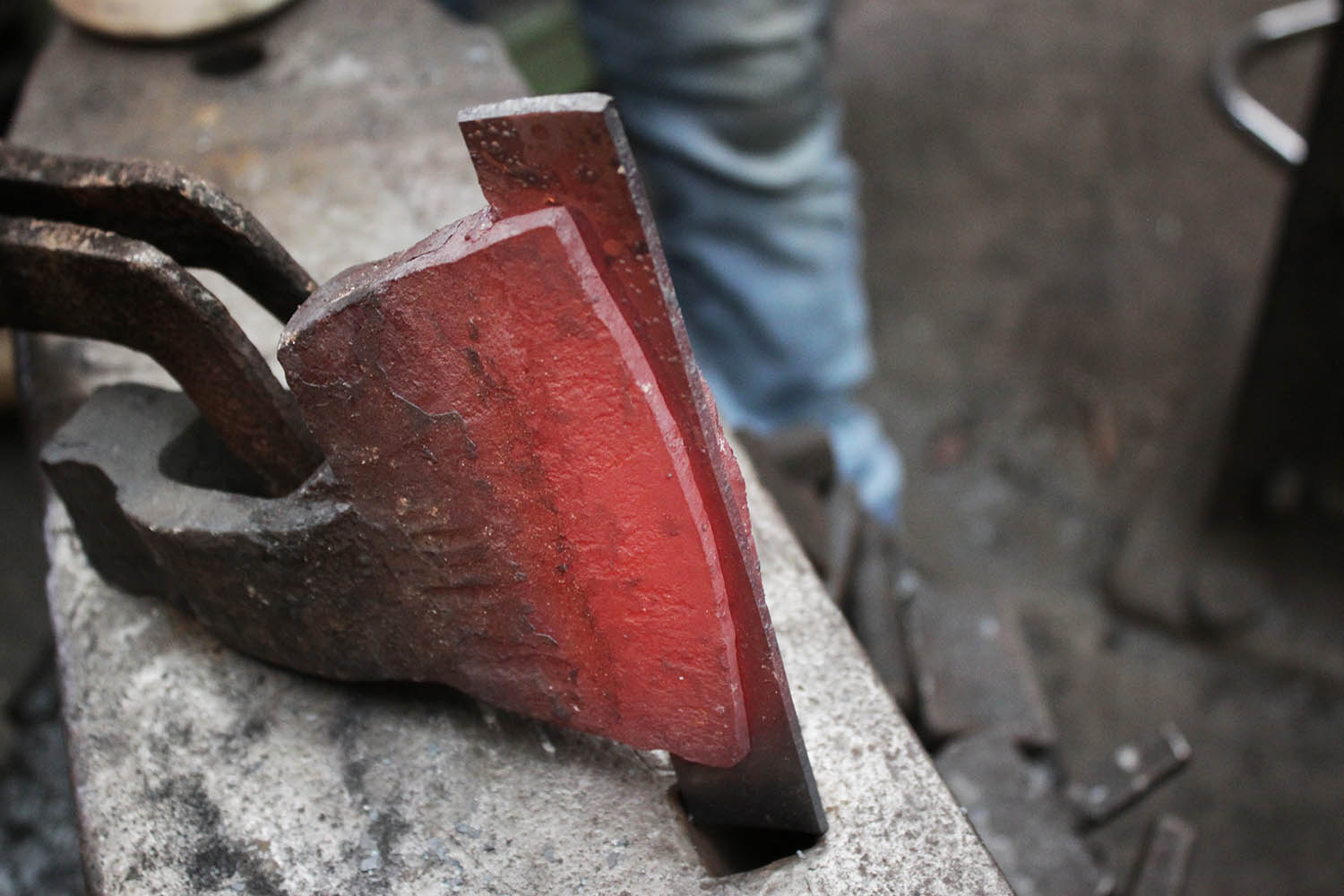 Costaud et courageux, notre breakdancer est venu casser les enclumes pour réaliser cette enorme hache forgée avec tranchant inséré. Du serieux et du bien vénère !!!