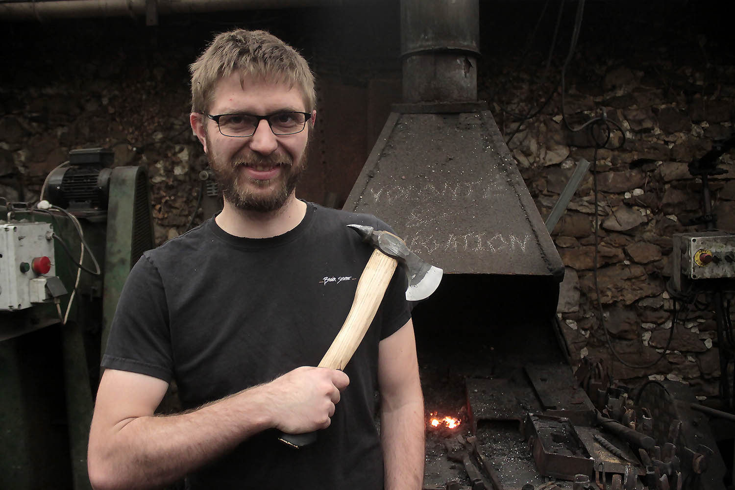 Super stage de forge pour Baptiste avec cette hache intégrale. Le tranchant est naturellement trempé, mais la griffe en guise de pommeau aussi. Redoutable !