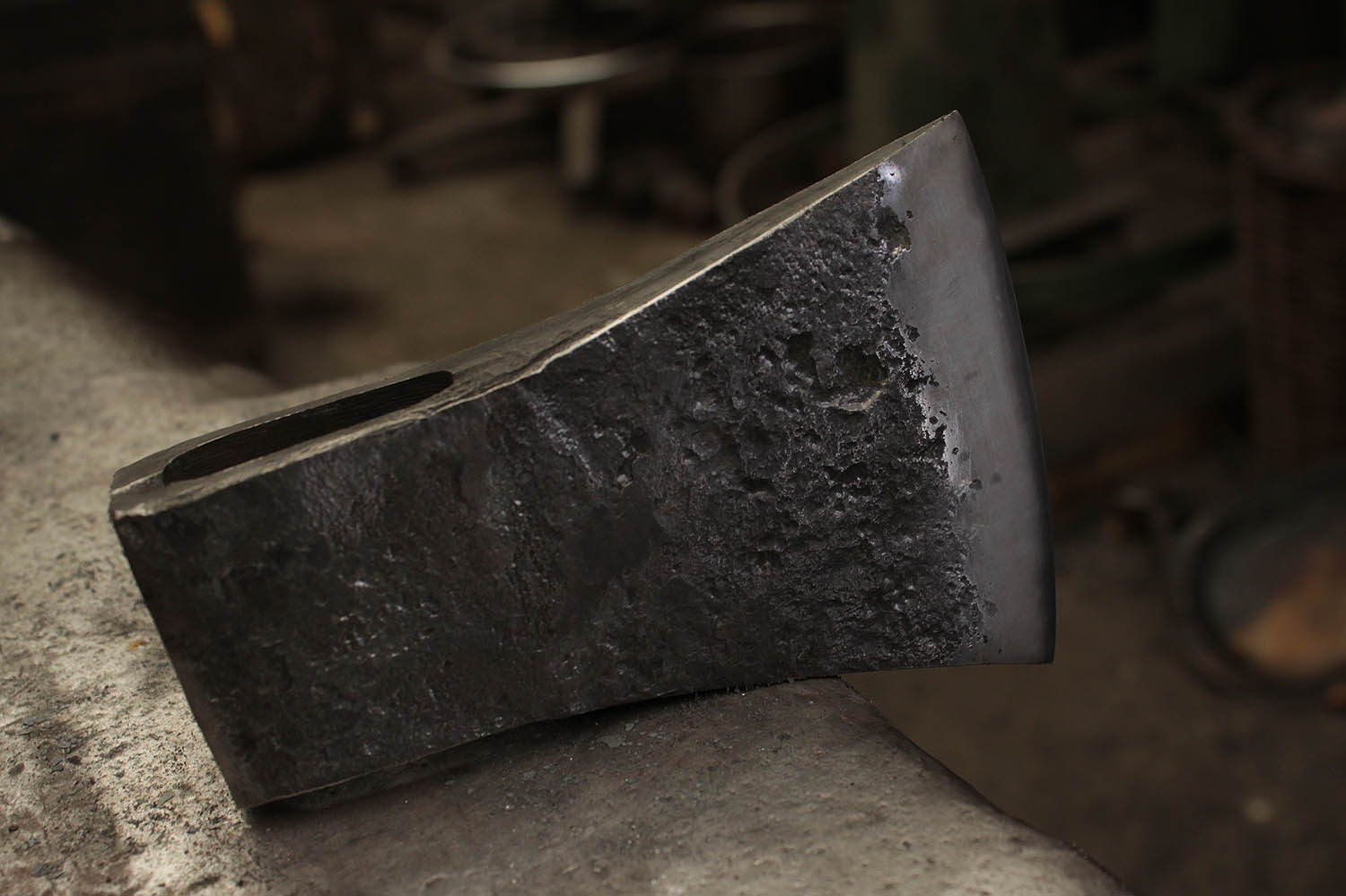 Charpentier et passionné, Pierre est passé pour réaliser cette superbe hache forgée. Un beau défi et un sacré travail.